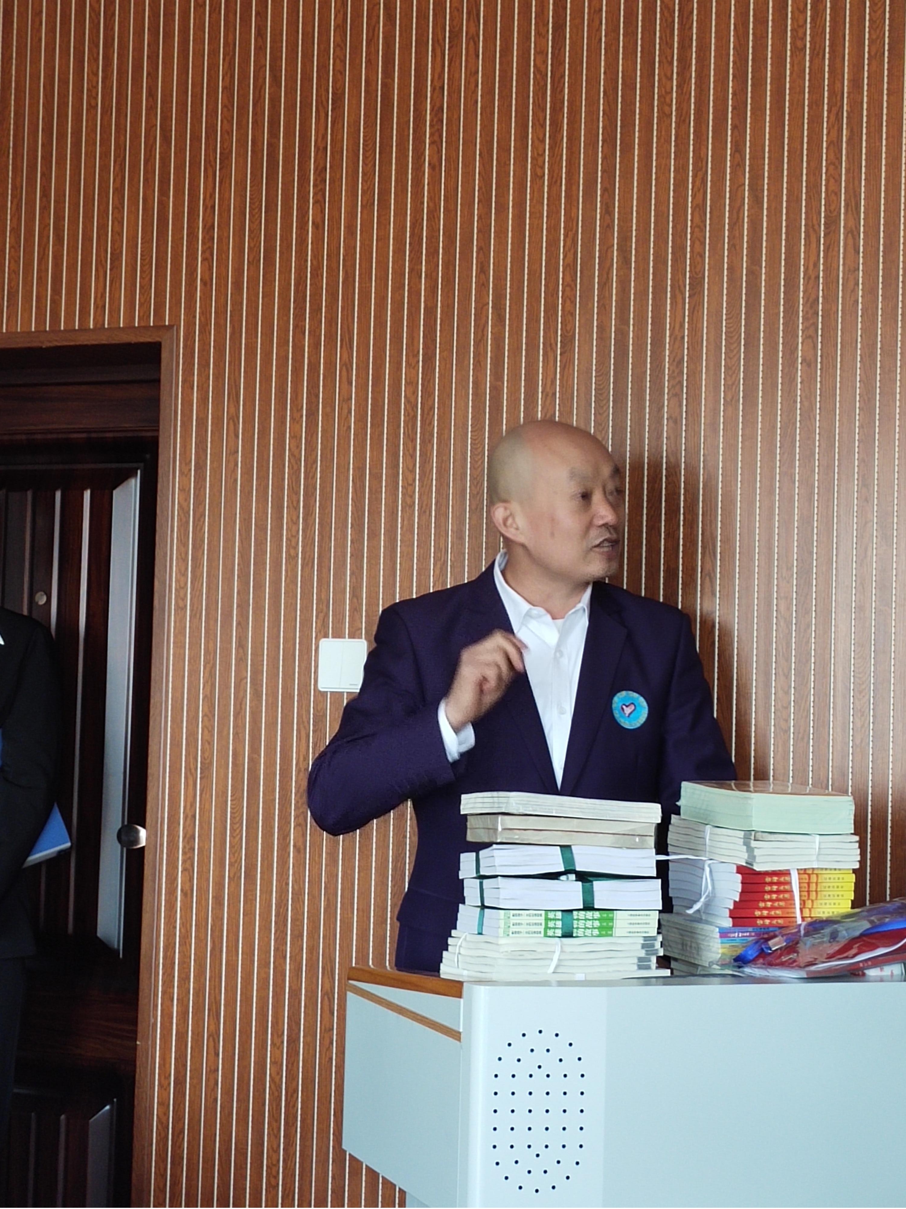 蓮花中心校校長(zhǎng)孫洪斌在捐書儀式上做了誠(chéng)摯的發(fā)言,承諾會(huì)好好利用這些書,給孩子們營(yíng)造一個(gè)良好的讀書氛圍,讓孩子們真正體會(huì)到讀書的重要性以及讀書所帶來的益處。