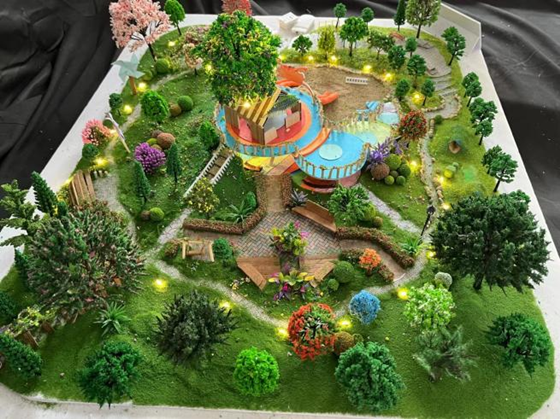 作品展指導(dǎo)教師之一王丹告訴記者:“學(xué)生們設(shè)計的所有校園環(huán)境景觀模型,都是根據(jù)東北林大校園內(nèi)的實際地塊結(jié)合周邊情況精心測繪和調(diào)研后設(shè)計制作的。通過此次實踐課程,使同學(xué)們了解海綿城市、雨水花園、風(fēng)能、太陽能等相關(guān)生態(tài)知識,實現(xiàn)理論與實踐相結(jié)合,在設(shè)計過程積極踐行生態(tài)文明理念,傳承和發(fā)揚東林特色與精神?!?