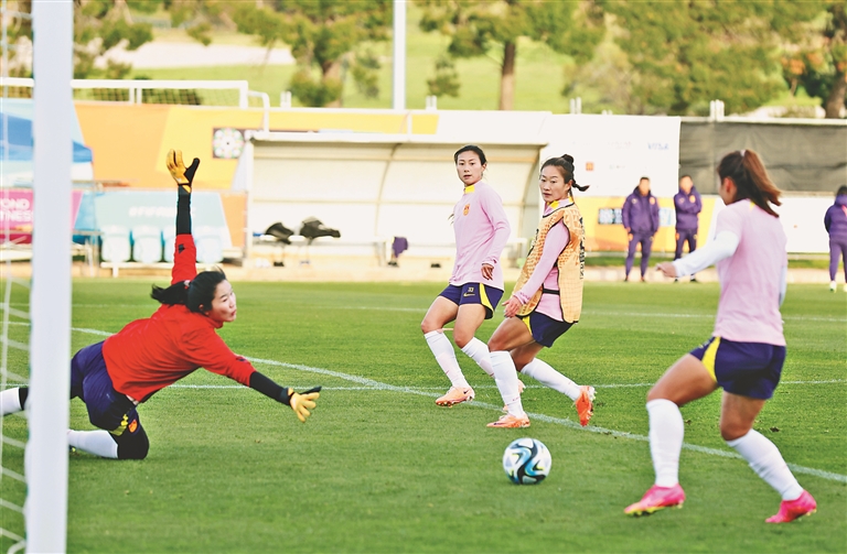 7月10日歸隊的王霜已完全融入,過障加速、接球射門,王霜彈無虛發(fā)。在6對6半場演練中,助理教練馬曉旭加入到王霜率領(lǐng)的黃隊,與唐佳麗、張馨所在的紅隊展開對攻大戰(zhàn)。快速的攻防轉(zhuǎn)換、漂亮的進球讓看臺上的球迷興奮不已,有球迷甚至打開了手機直播。