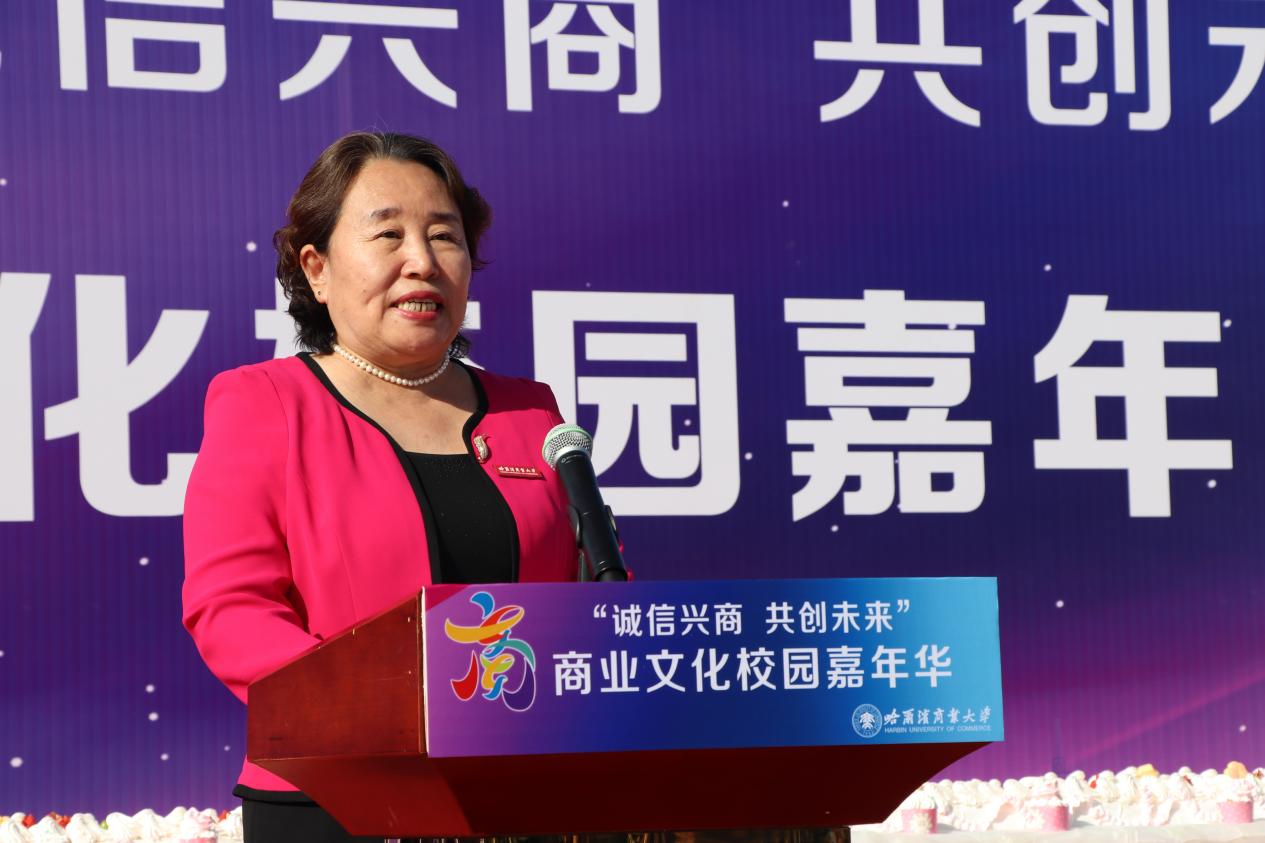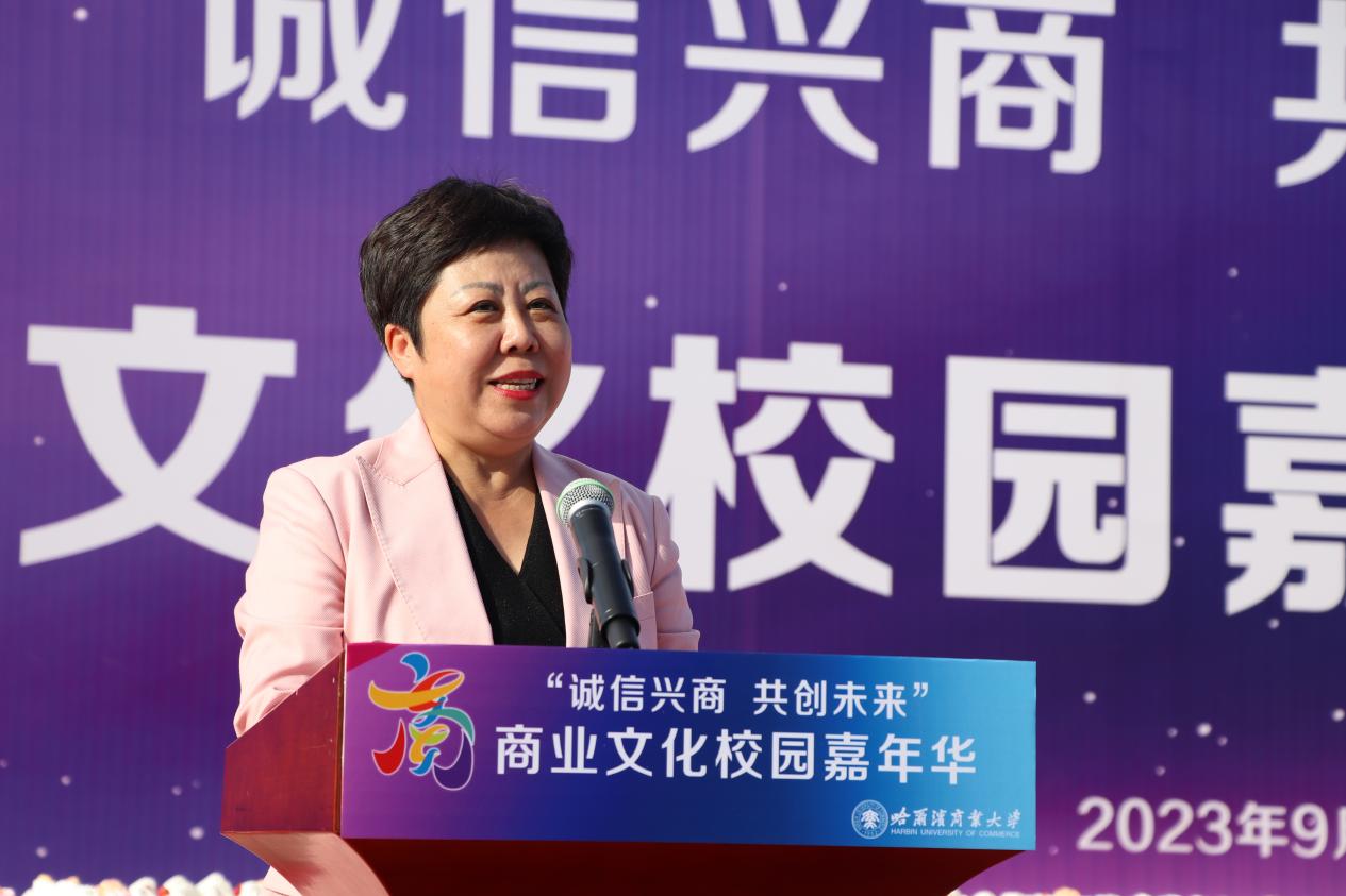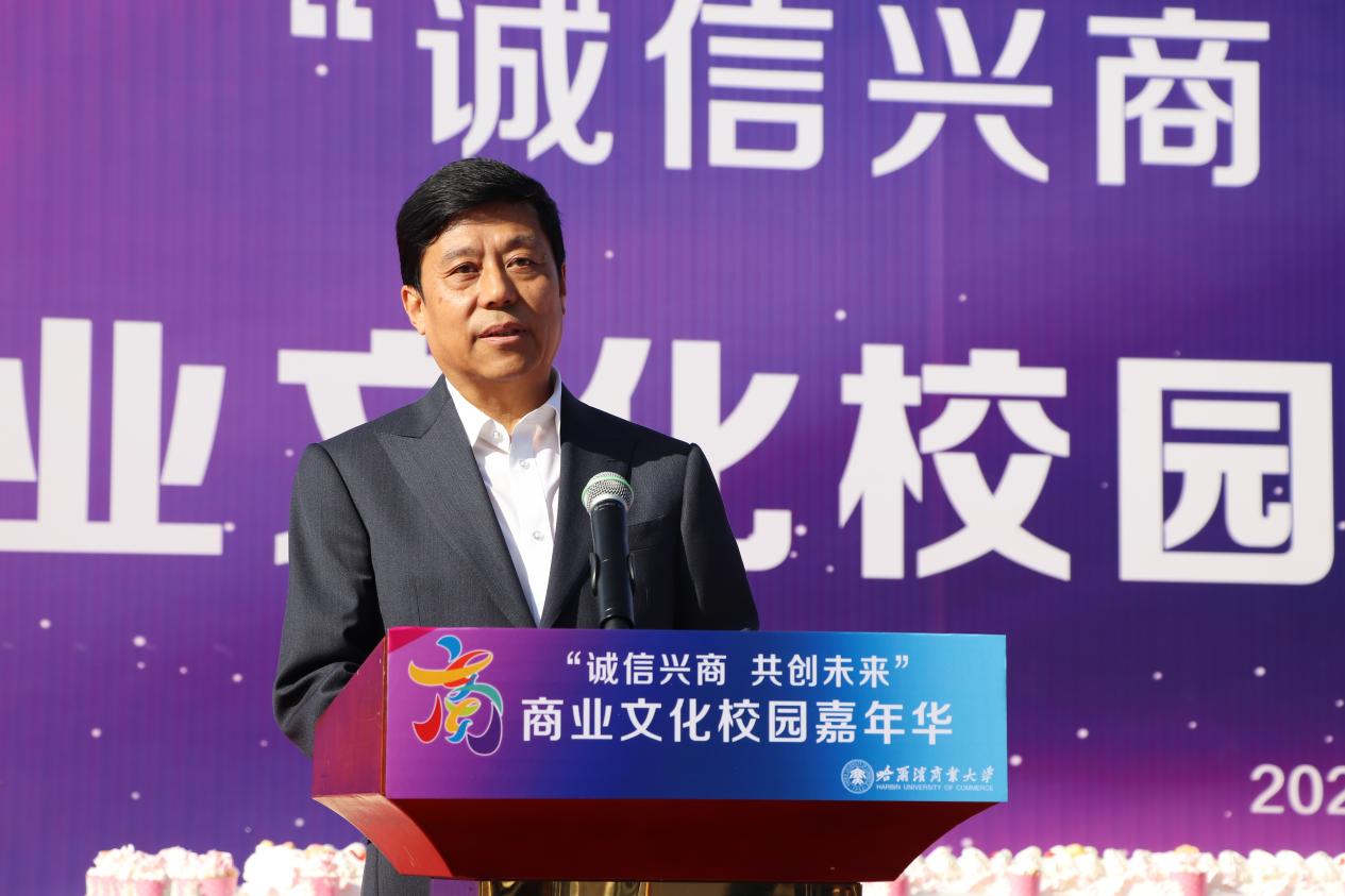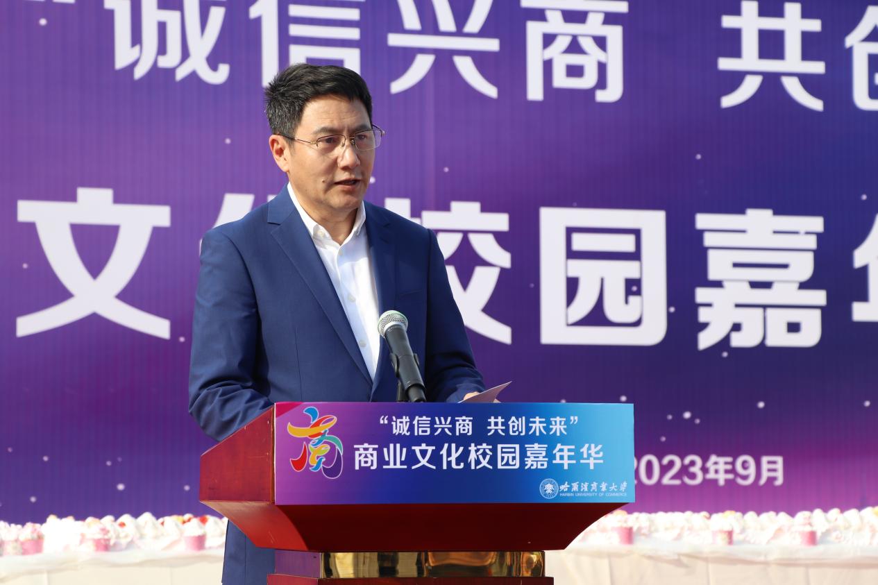 哈爾濱商業(yè)大學(xué)黨委書記孫先民致辭。他表示,誠信“軟實力”為高質(zhì)量發(fā)展提供“硬支撐”。本屆“誠信興商·共創(chuàng)未來”商業(yè)文化校園嘉年華活動堅持以文化力量啟智潤心、固本培元,是深入學(xué)習(xí)貫徹習(xí)近平總書記在主持召開新時代推動?xùn)|北全面振興座談會和視察我省時的重要講話重要指示精神,全面落實立德樹人根本任務(wù)的務(wù)實舉措。哈爾濱商業(yè)大學(xué)作為新中國第一所多科性商業(yè)大學(xué),始終堅持“大商鑄才、大雅育人、商雅兼?zhèn)?、?jīng)世濟(jì)民”的育人理念,厚植師生“心懷祖國,至誠奉獻(xiàn),以商弘業(yè),矢志一流”的大商之道?;顒訉⒊浞职l(fā)揮老字號在文化引領(lǐng)、品牌建設(shè)、產(chǎn)業(yè)升級等方面的示范引領(lǐng)作用,彰顯龍江市場主體活力與創(chuàng)新力,聚焦建設(shè)“六個龍江”、推進(jìn)“八個振興”,筑牢堅定龍江文化繁榮發(fā)展的自信根基,進(jìn)一步凝聚師生扎根龍江、服務(wù)龍江、建設(shè)龍江的情懷和力量。