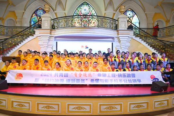 “希望與愛手拉手,相約冰雪逐夢(mèng)亞冬。哈爾濱,我們來啦!”40名雙鴨山“小黃鴨”是來自雙鴨山地區(qū)的留守兒童、礦工和武警子女、低保戶困境家庭學(xué)生以及少先隊(duì)紅領(lǐng)巾宣講員。開營(yíng)儀式后,雙鴨山“小黃鴨”們與哈爾濱新朋友,攜手暢游伏爾加莊園。并將在今后的5天中,體驗(yàn)哈爾濱工程大學(xué)校園生活,參觀游玩哈爾濱工程大學(xué)哈軍工紀(jì)念館、北大荒博物館、龍塔、侵華日軍第七三一部隊(duì)罪證陳列館、哈爾濱工業(yè)大學(xué)航天館、索菲亞教堂、太陽島雪博會(huì),欣賞融創(chuàng)冰雪秀等精彩表演,感受“希望工程·快樂冰雪”的魅力。白色的雪覆蓋著黑土地,萌生的是綠色的希望。黑龍江省立足冰雪資源稟賦,“希望工程·快樂冰雪”公益項(xiàng)目于2013年在省內(nèi)希望小學(xué)、鄉(xiāng)村小學(xué)內(nèi)實(shí)施開展,黑龍江籍冬奧冠軍楊揚(yáng)、張會(huì)、武大靖等先后助力?!跋Mこ獭た鞓繁表?xiàng)目資助鄉(xiāng)村學(xué)校澆筑冰場(chǎng),為龍江學(xué)子捐贈(zèng)愛心冰刀,帶領(lǐng)留守兒童赴冰雪大世界、太陽島雪博會(huì)等地開展形式多樣的賞冰樂雪活動(dòng)。充分發(fā)揮黑龍江省冰雪資源優(yōu)勢(shì),不斷鞏固和擴(kuò)大“帶動(dòng)三億人參與冰雪運(yùn)動(dòng)”的工作成果,滿足青少年多樣化的體育文化需求,為進(jìn)一步推廣普及群眾性冰雪運(yùn)動(dòng)助力。值此亞冬會(huì)有利契機(jī),希望工程發(fā)起組織“相約冰雪逐夢(mèng)亞冬”希望與愛手拉手公益研學(xué)活動(dòng),是貫徹落實(shí)習(xí)近平總書記寄語希望工程重要精神的生動(dòng)實(shí)踐,通過公益研學(xué),讓城市青少年與鄉(xiāng)村青少年手拉手、心連心,共同開拓視野,參與社會(huì)實(shí)踐,在研學(xué)中收獲知識(shí)、友誼,也收獲了希望與愛。