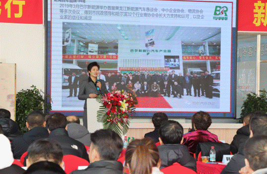 黑龍江巴爾新能源汽車銷售有限公司董事長高臣文、總經(jīng)理徐娟就物聯(lián)網(wǎng)+新能源汽車產(chǎn)業(yè)相關(guān)情況以及發(fā)展新能源汽車產(chǎn)業(yè)規(guī)劃進(jìn)行路演推介,并作民營企業(yè)家理想信念報告。