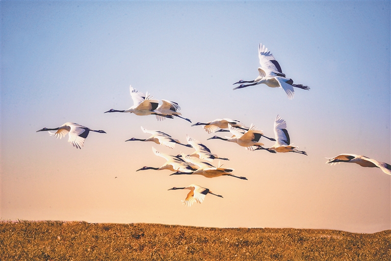 扎龍國家級(jí)自然保護(hù)區(qū)內(nèi)碧波蕩漾、水草豐盛,游客行走在濕地的棧道上,感受微風(fēng)清涼,在自然大氧吧里暢快呼吸,看丹頂鶴野化放飛,與丹頂鶴近距離互動(dòng),人鳥共生自然和諧……好一幅“荻花不染塵埃色,野鳥閑鳴天籟聲”的醉人畫卷。
