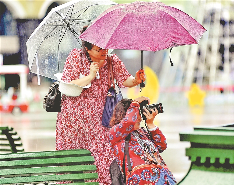 5日,芒種。當天,哈爾濱市迎來降雨天氣,雨水洗凈了整座城市,也帶來了清涼,出行的人們在雨中不忘拍照賞景。