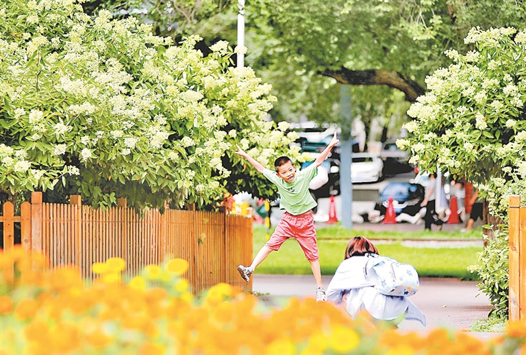 29日,哈爾濱市兒童公園內,數十株圓錐繡球正陸續(xù)開花。這些美麗的花朵為夏日冰城再添一道風景,吸引了許多游客前來觀看、拍照。