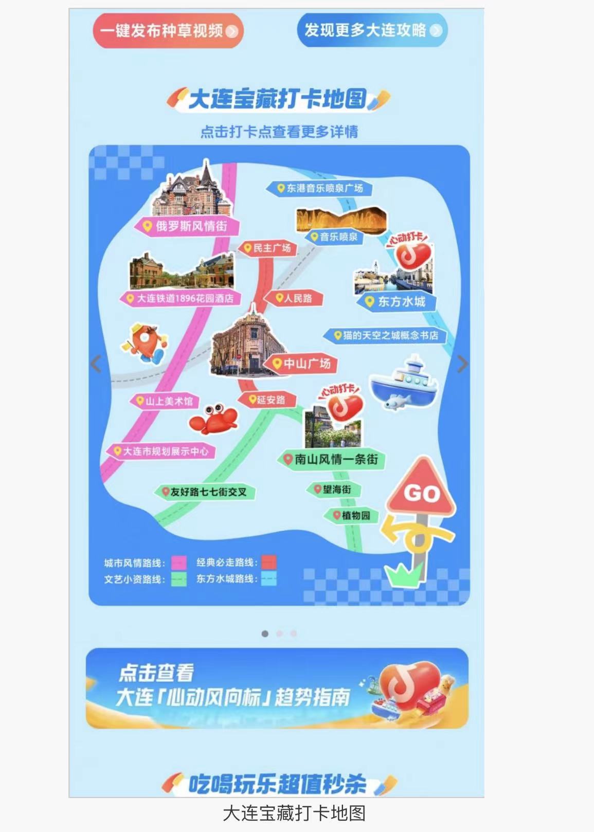 線(xiàn)上推廣方面,大連市文化和旅游局與抖音生活服務(wù)共同搭建“心動(dòng)大連”話(huà)題頁(yè)與“活動(dòng)主會(huì)場(chǎng)”頁(yè)面,聚合達(dá)人、用戶(hù)、媒體的多樣化內(nèi)容以及本地精選文旅商家,集中推廣大連文旅資源和特色消費(fèi)場(chǎng)景。費(fèi)啟鳴、婁藝瀟、喜劇人大鎖等多位大連籍明星藝人,受邀作為“心動(dòng)大連推薦官”為大連文旅打Call。活動(dòng)將發(fā)起“心動(dòng)直播周”促消費(fèi)專(zhuān)場(chǎng)直播,設(shè)定周播主題,宣傳城市吃喝玩樂(lè)特色內(nèi)容?;顒?dòng)還將結(jié)合大連文旅特色以及中秋節(jié)點(diǎn),發(fā)起“海邊的大連有多浪漫”“中秋來(lái)大連實(shí)現(xiàn)海鮮自由”等熱門(mén)話(huà)題造勢(shì)。(抖音)