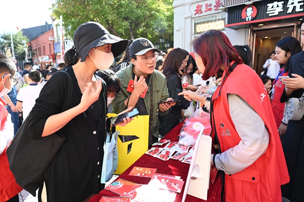 義賣開始后,小志愿者們耐心熱情地向路人詳細(xì)介紹項(xiàng)目情況、受助群體和捐贈(zèng)流程,動(dòng)員愛心人士參與公益項(xiàng)目。你捐款,我贈(zèng)送,把手中的物品作為禮物回贈(zèng)給捐款人,他們不像在勸募,更是一個(gè)個(gè)宣傳員,身體力行傳播希望、傳遞溫暖。