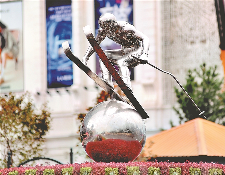 冰球運動雕塑。