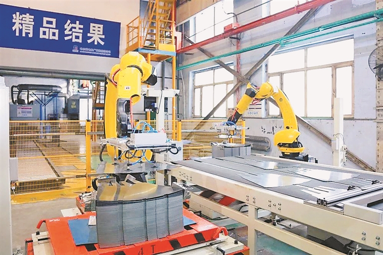 機(jī)器人焊接。本報(bào)記者 李愛(ài)民攝