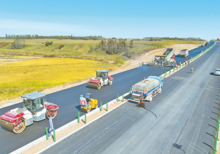 本報訊(丁旭 記者郭俊峰)秋高氣爽,施工黃金期。近日,記者在鐵科高速公路方正至延壽尚志界段項目K214瀝青攤鋪施工現(xiàn)場看到,大型攤鋪機正在進行路面中面層的瀝青攤鋪,兩臺光輪壓路機對已攤鋪的瀝青進行碾壓,工人各負其責(zé),有序施工。