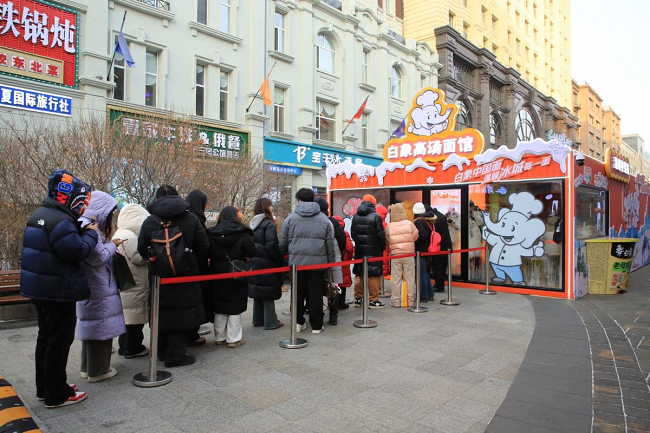 白象中國面,溫暖冰城每一面。去年12月31日至今年1月5日,白象高湯面館空降哈爾濱中央大街,用一碗高湯面開啟暖心跨年新體驗。期間,巨型白象創(chuàng)意雪雕“對象”火熱出圈,多重互動玩法和試吃活動吸引大量游客打卡嗨玩,為冰城游客和廣大消費者獻(xiàn)上一場別開生面的冰雪盛宴。