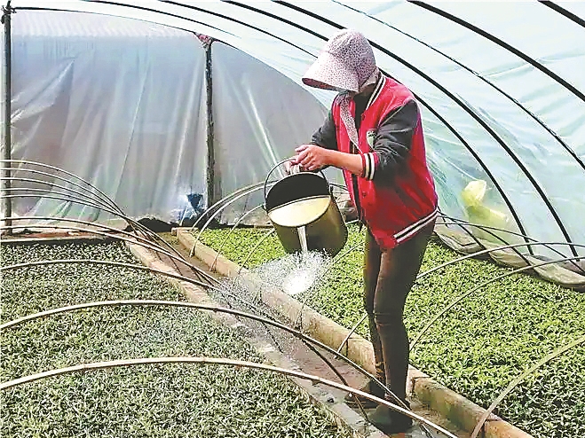大棚里的秧苗綠意盎然。楊昕宇攝