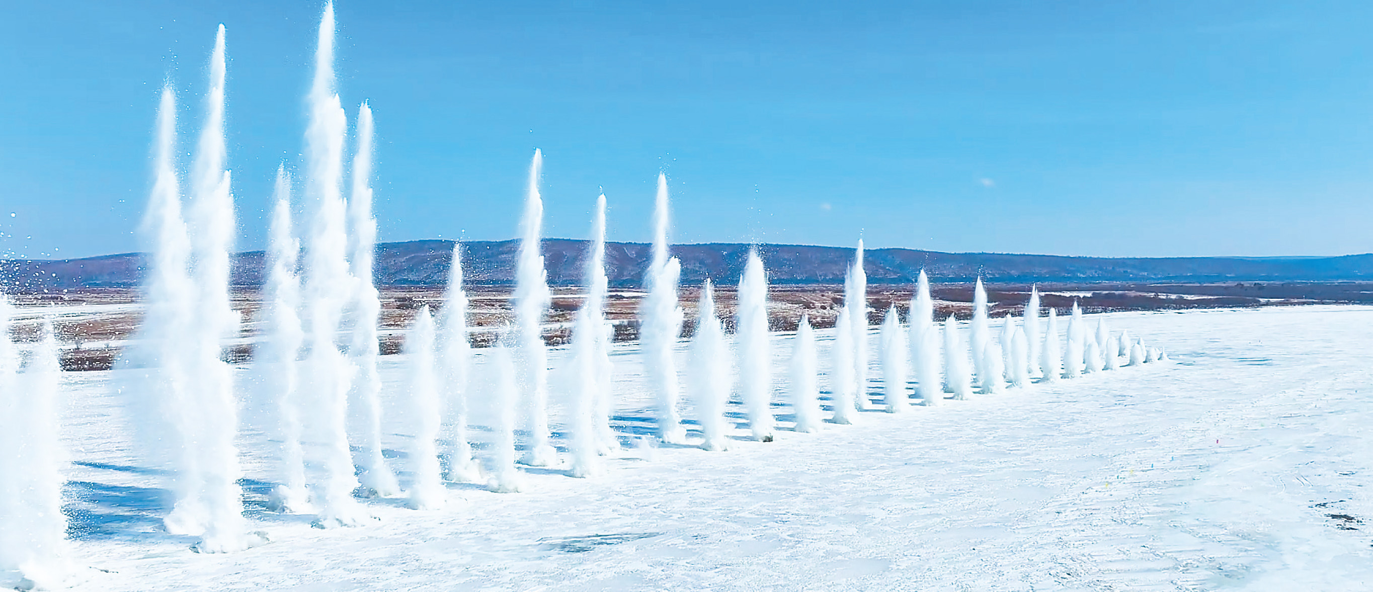 短短幾秒的時間,航標(biāo)號262到264之間的黑龍江江面上,便瞬間形成了幾十米高的冰霧柱和三公里長的破碎段,場面非常壯觀?!敖?jīng)前期凌汛會商,今春黑龍江上游發(fā)生冰凌卡塞的可能性較大,所以我們決定對黑龍江呼瑪鎮(zhèn)上江島段和鷗浦鄉(xiāng)三合段兩個主要區(qū)域?qū)嵤┤L4800米的主動防凌爆破作業(yè)?!焙衄斂h水務(wù)局副局長王軍說。據(jù)悉,鷗浦鄉(xiāng)三合江段1800米的防凌爆破作業(yè)將于2日實(shí)施。