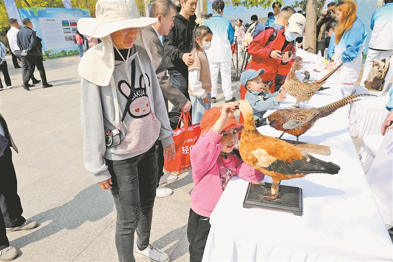 活動(dòng)現(xiàn)場(chǎng),野生動(dòng)物保護(hù)志愿者和高校大學(xué)生代表分別發(fā)起愛鳥護(hù)鳥倡議和宣言,播放了鳥類保護(hù)宣傳片,通過優(yōu)秀巡護(hù)員的經(jīng)驗(yàn)分享,以及各類標(biāo)本展示、宣傳展板等方式向公眾宣傳保護(hù)鳥類的知識(shí)和相關(guān)法律法規(guī)。