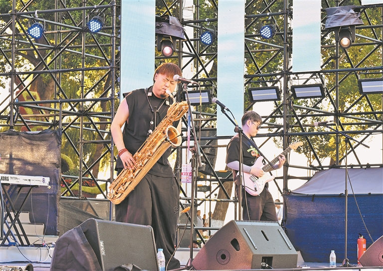 本報28日訊(記者李鵬舉)28日晚,第20屆世界薩克斯管大會系列演出在哈爾濱防洪紀(jì)念塔廣場舉行。當(dāng)晚,Uncle Bad樂隊(duì)Ska punk原創(chuàng)音樂作品匯報表演和沈陽音樂學(xué)院爵士大樂隊(duì)的專場音樂會,用靈動的旋律為哈爾濱夏夜注入活力,為市民和游客呈現(xiàn)了一場視聽盛宴。