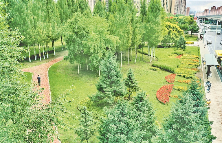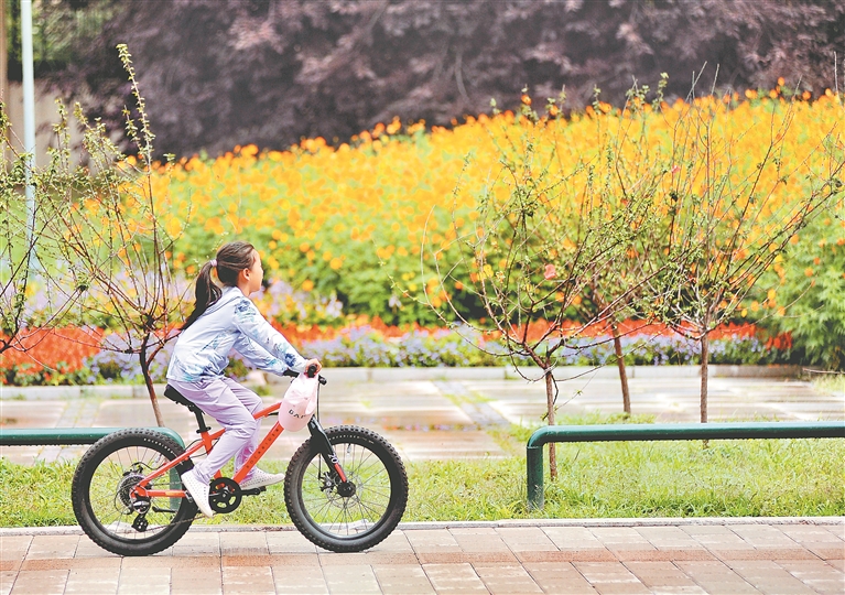3日,哈爾濱市道里區(qū)陽明灘大道附近,行人從“口袋公園”旁走過。今年,當(dāng)?shù)匦陆硕鄠€“口袋公園”,占地面積數(shù)萬平方米。公園里,樹木生長茂盛,鮮花爭奇斗艷,小道從園中穿過,道旁設(shè)有座椅、健身器材等。許多附近居民到這里休閑、賞景。