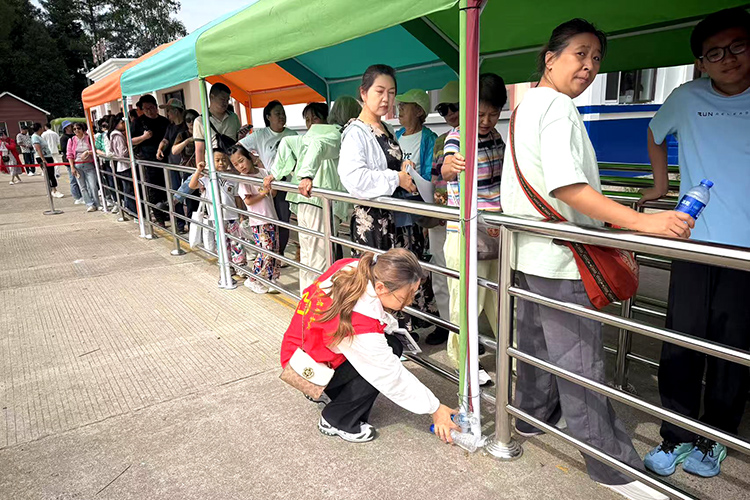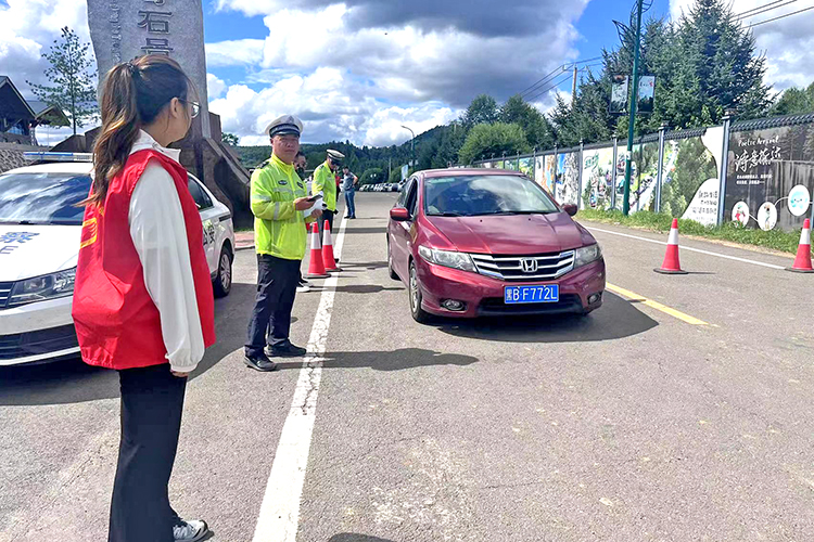 暢通“出行路”:交通協(xié)管繪就平安景。在石林景區(qū)入口,志愿者與交警并肩而立,化身“文明引導(dǎo)員”。他們有序引導(dǎo)游客排隊乘車,耐心解答路線咨詢,及時勸導(dǎo)不文明行為。烈日下堅守的身影,成為景區(qū)一道流動的風(fēng)景線。通過協(xié)同聯(lián)動,有效緩解高峰時段交通壓力,提升了游客出行體驗,也展現(xiàn)了基層治理的溫度與效能?;顒永塾嫵鰟又驹刚?人次,服務(wù)時長超400小時,引導(dǎo)游客有序乘車8000余人次,勸導(dǎo)不文明行為20余起,景區(qū)交通秩序明顯改善。