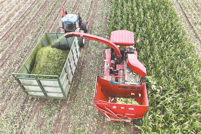 收割現(xiàn)場一派忙碌景象,農(nóng)場調(diào)配的2臺青貯下棒一體收割機(jī)高效作業(yè),實(shí)現(xiàn)莖穗同步收獲,效率較傳統(tǒng)模式提升3倍以上,10輛青貯運(yùn)輸車與4輛糯玉米棒運(yùn)輸車有序配合,日均完成150畝。作業(yè)中,12名黨員主動組成“助農(nóng)突擊隊(duì)”,深入田壟撿拾玉米,確保顆粒歸倉。