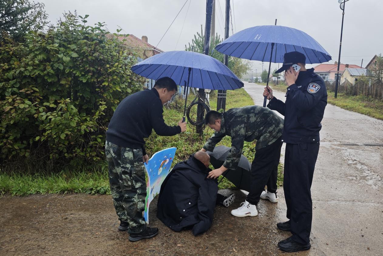 到達(dá)現(xiàn)場(chǎng)后,民警發(fā)現(xiàn)老人面部有明顯擦傷,腿部無(wú)法活動(dòng)。為避免隨意移動(dòng)造成二次傷害,民警第一時(shí)間找來(lái)雨傘和棉襖,一邊撐傘為老人遮擋風(fēng)雨,一邊用棉襖裹住老人身體保暖。同時(shí),民警迅速聯(lián)系老人家屬,并撥打120急救電話,家屬表示希望將老人送往縣里醫(yī)院治療。民警又緊急協(xié)調(diào)縣里的救護(hù)車(chē),在等待期間,民警一直撐著傘守護(hù)老人,并與老人輕聲交談,耐心安撫老人情緒,緩解其緊張與疼痛。