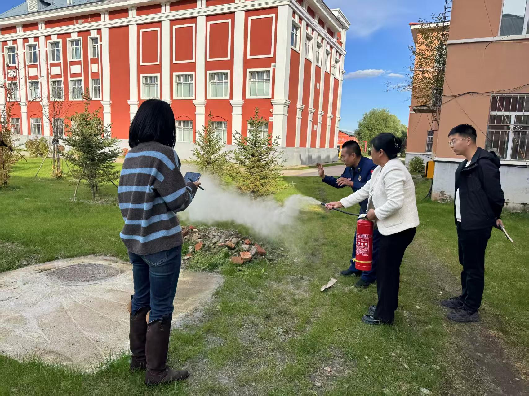 消防宣講員指導(dǎo)職工實(shí)操滅火器演練(孫珍珍 攝)