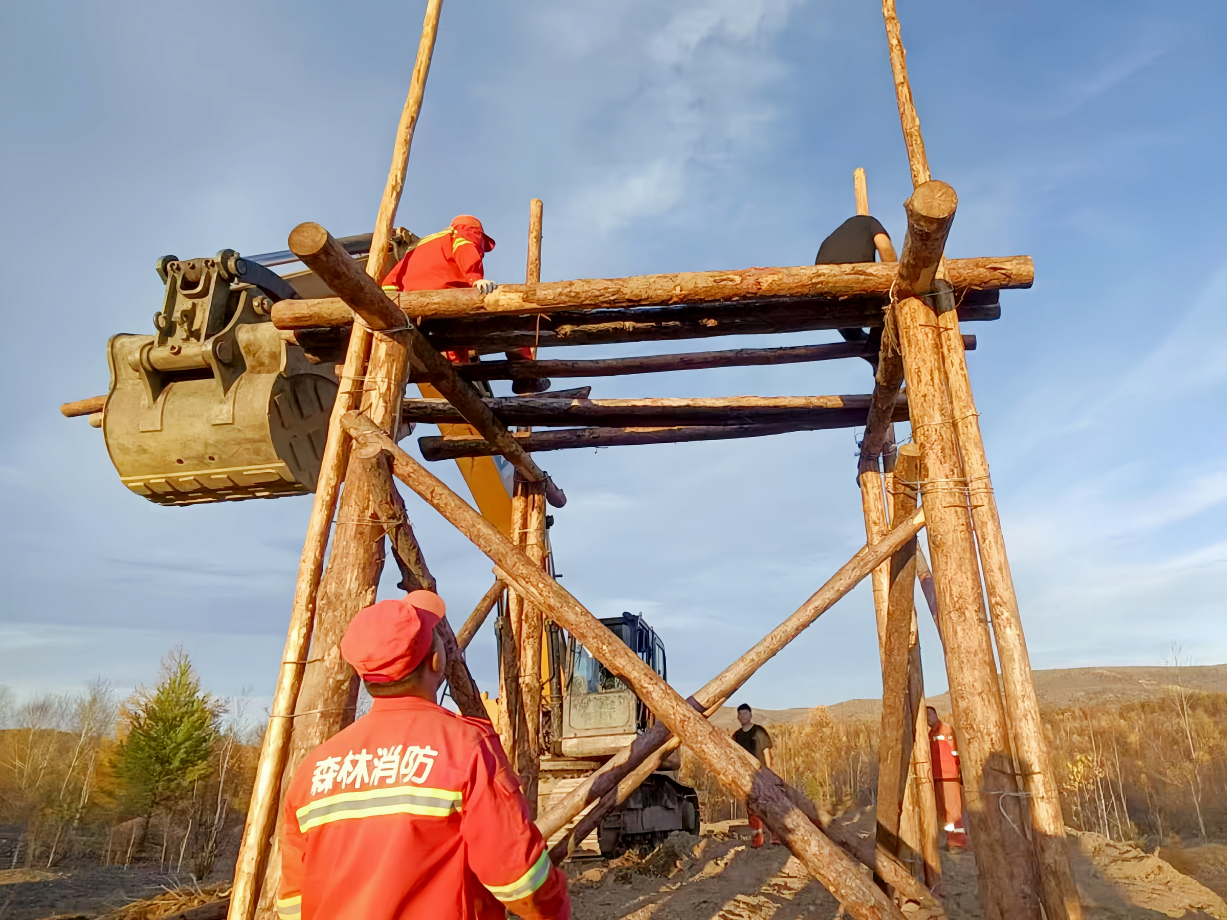 新林林業(yè)局工作人員在搭建臨時(shí)鳥(niǎo)類觀測(cè)平臺(tái)(耿子健 攝)