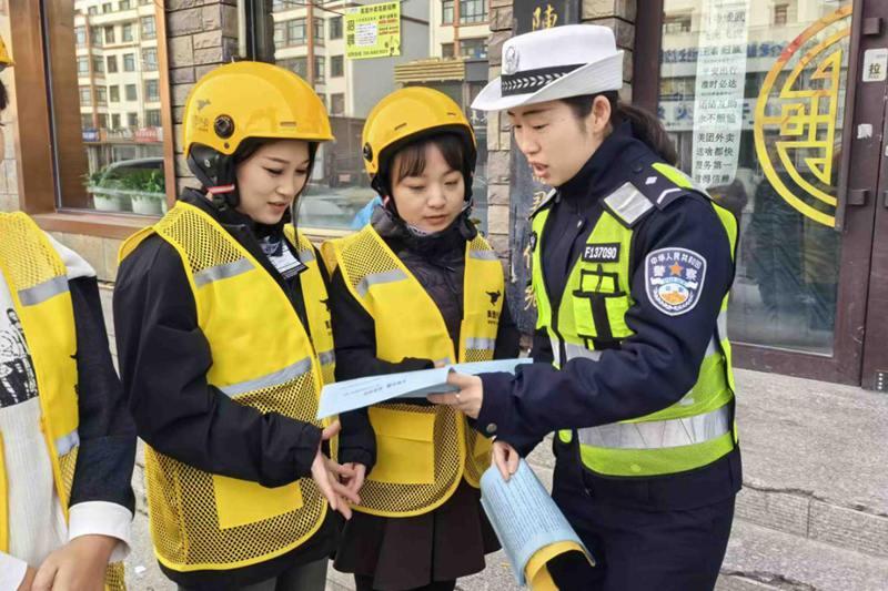 活動(dòng)中,民警先后走進(jìn)轄區(qū)外賣(mài)企業(yè)及物流運(yùn)輸企業(yè),結(jié)合轄區(qū)交通管理工作實(shí)際,緊緊圍繞當(dāng)前廣大交通參與者的出行特點(diǎn),通過(guò)發(fā)放宣傳資料、粘貼海報(bào)及以案釋法等方式,向企業(yè)負(fù)責(zé)人及駕駛?cè)嗽敿?xì)講解雨雪天氣出行交通安全知識(shí)及酒駕醉駕、無(wú)牌無(wú)證、超員超載、不佩戴安全頭盔、不系安全帶等違法行為的嚴(yán)重危害和后果,同時(shí)現(xiàn)場(chǎng)警示交通參與者:“摒棄僥幸心理,從細(xì)節(jié)養(yǎng)成良好駕駛習(xí)慣,緊繃交通安全弦,時(shí)刻守住出行安全防線(xiàn)?!?/span>