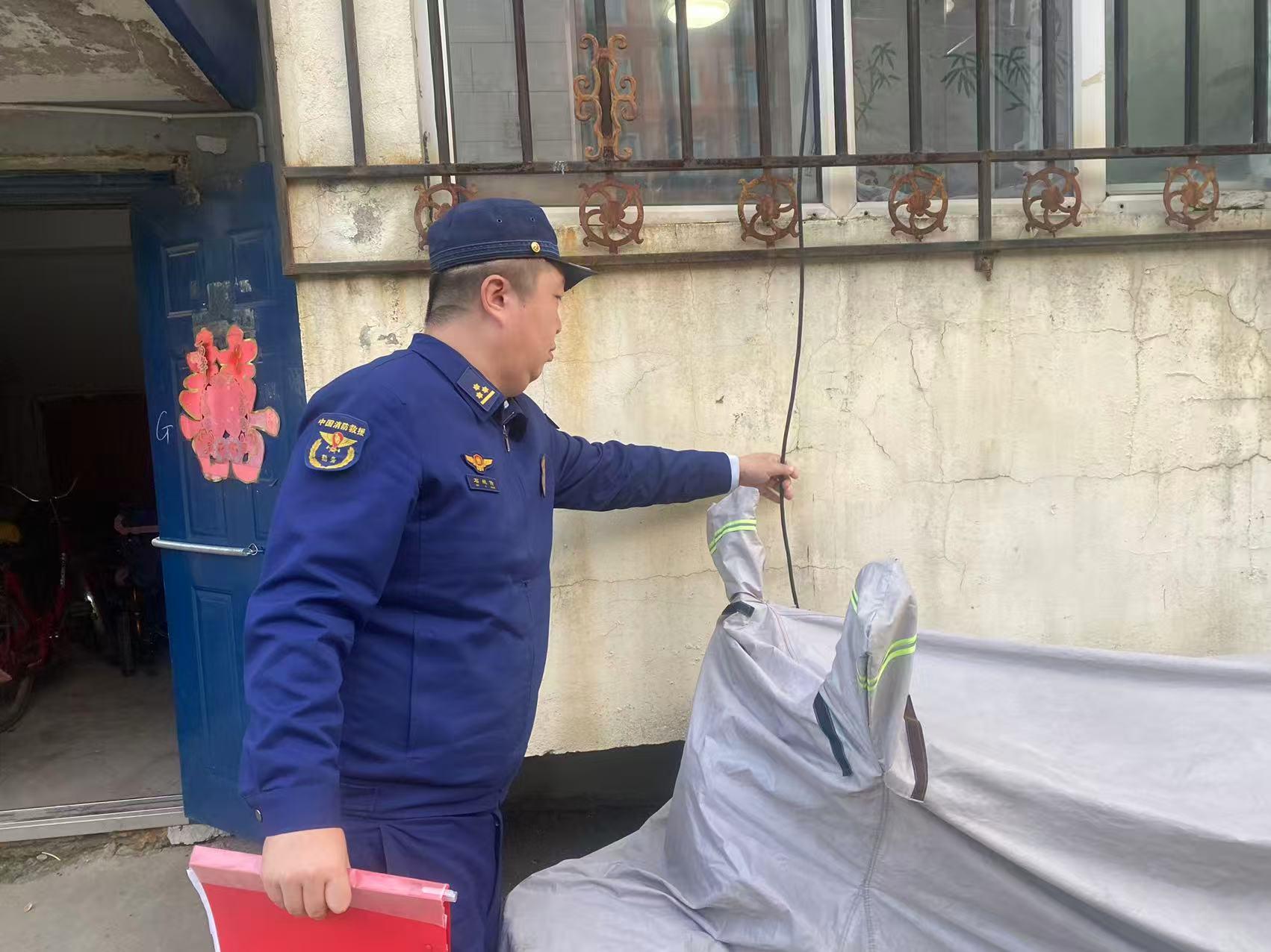 塔河縣消防救援大隊(duì)執(zhí)法人員深入居民樓區(qū)開(kāi)展電動(dòng)車飛線充電隱患排除活動(dòng)(孫珍珍 攝)