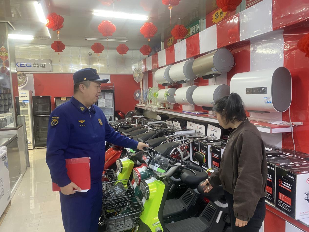 塔河縣消防救援大隊(duì)執(zhí)法人員深入電動(dòng)車銷售門店開(kāi)展安全檢查(孫珍珍 攝)
