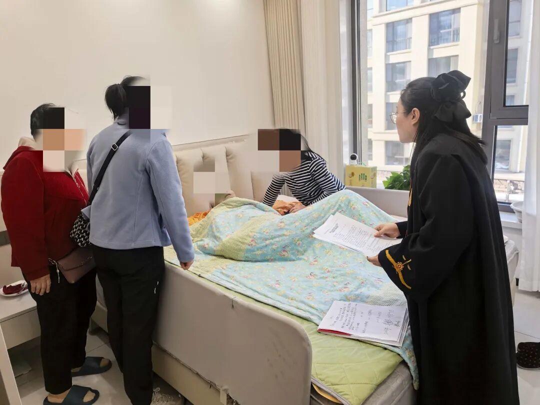 開庭當(dāng)天,干警們一進(jìn)老人家門,就忙著搭建“臨時(shí)法庭”;法官?zèng)]有用急促的問話推進(jìn)流程,反而把語速放慢了兩倍,拉著老人的手耐心傾聽——這份“把當(dāng)事人當(dāng)家人”的細(xì)致,漸漸融化了老兩口心中的芥蒂,讓他們?cè)敢獬ㄩ_心扉溝通。調(diào)解結(jié)束后,法官特意蹲在張爺爺?shù)牟〈策叾冢骸昂罄m(xù)的法律文書我們會(huì)直接送過來,您和阿姨要是有任何疑問,隨時(shí)給我們打電話,不用來回跑法院?!甭牭竭@話,張爺爺看著干警們收拾東西的背影,渾濁的眼睛里忽然泛起了微光,他輕輕吐出兩個(gè)字:“謝謝”。這簡單的兩個(gè)字,藏著老人及家人對(duì)“司法不缺位”的深深感激,更映出了人民群眾對(duì)“司法為民”的熱切期盼。