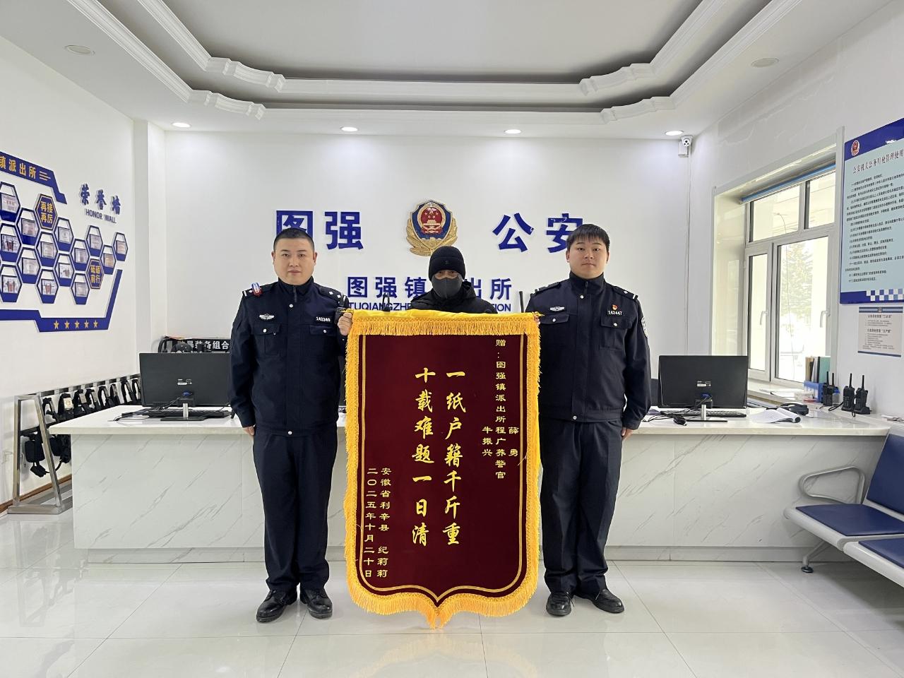 黑龍江經(jīng)濟網(wǎng)訊(顧蘭)“一紙戶籍千斤重,十載難題一日清”,這面錦旗從南國水鄉(xiāng)利辛,到北國邊陲大興安嶺圖強林業(yè)局,跨越了2200多公里的山河,在這個冬寒漸深的季節(jié),圖強警方用行動證明溫暖從不因距離而褪色,為民服務的初心始終熠熠生輝。