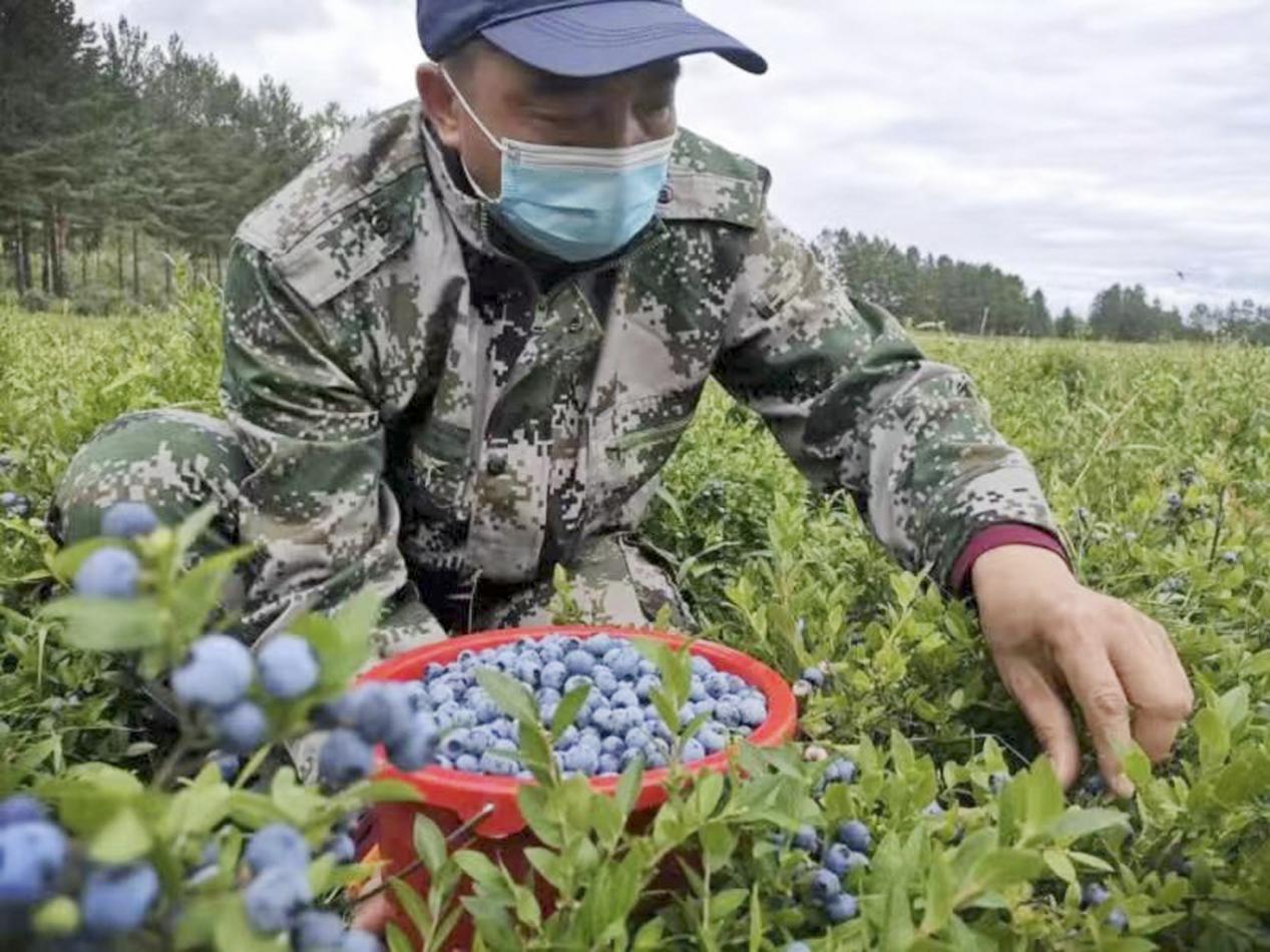 林場工作人員正在采摘藍(lán)莓(時(shí)智超 攝)