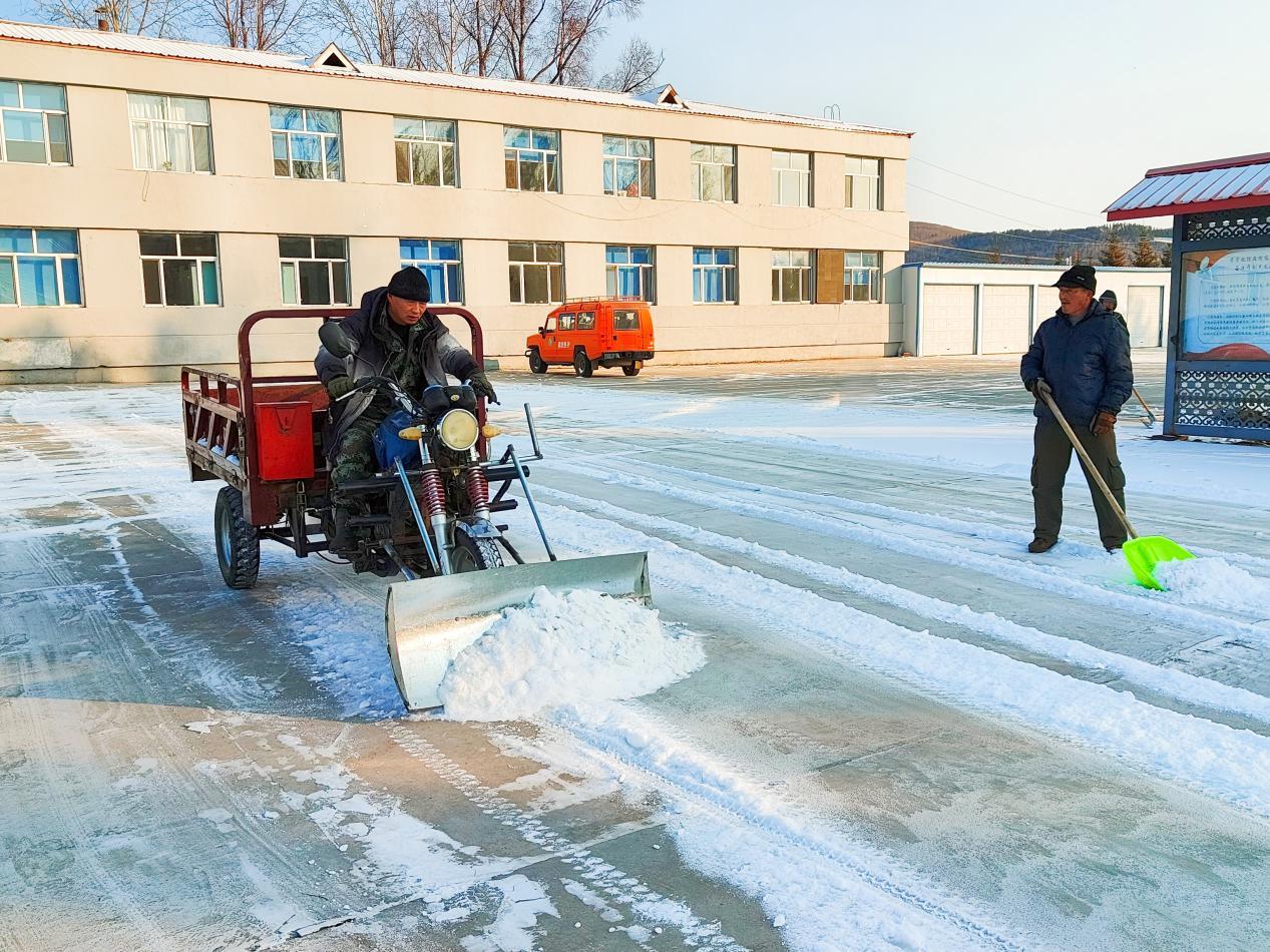 清雪現(xiàn)場,干部職工們嚴(yán)格遵循“即下即清、雪停路凈”的原則,不畏凜冽寒風(fēng),迅速投入戰(zhàn)斗。大家分工協(xié)作,形成了“機械+人工”的高效清雪模式。職工們各展所長,有人駕駛自制清雪車清理積雪,有人用推雪板歸集散雪,還有人手持雪鏟、吹雪機細致清理人行道縫隙等邊角區(qū)域。經(jīng)過近3小時的奮戰(zhàn),林場責(zé)任區(qū)內(nèi)的積雪被清除干凈,露出了整潔的路面和暢通的通道,為職工群眾和過往車輛安全通行清出了一片“平安路”。