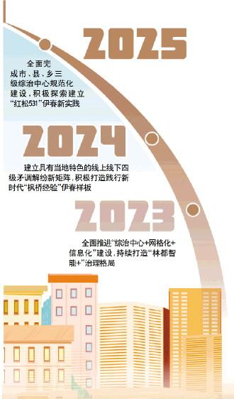 2025年,伊春全面完成市、縣、鄉(xiāng)三級綜治中心規(guī)范化建設(shè),積極探索建立“紅松531”伊春新實踐,即黨委領(lǐng)治、政府主治、部門齊治、社會協(xié)治、群眾自治“五治一體”,治理信息化平臺統(tǒng)籌協(xié)調(diào)端、“伊網(wǎng)通”App基層工作端、“伊網(wǎng)通”微信小程序群眾服務(wù)端三項信息化工具,采集能力、輸出能力、共享能力全面的一個數(shù)據(jù)底座。