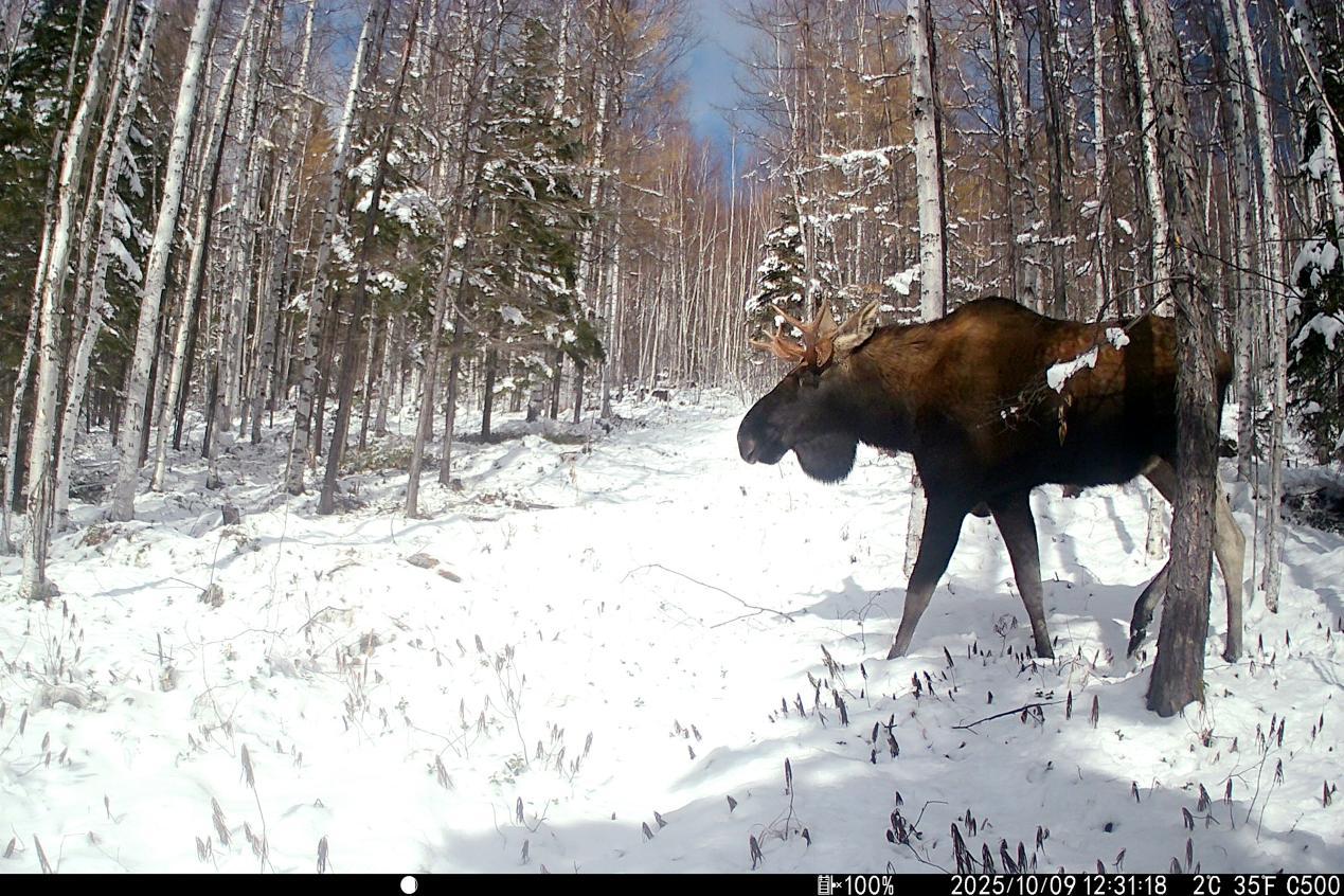 項目實施中,工作人員克服地形復(fù)雜、嚴(yán)寒天氣等挑戰(zhàn),深入森林公園腹地完成15條冬季樣線調(diào)查,并同步開展97臺紅外相機(jī)的維護(hù)與回收工作,累計獲取了大量珍貴野生動物影像資料及活動數(shù)據(jù)。監(jiān)測范圍內(nèi),駝鹿、原麝、貂熊、紫貂、猞猁、棕熊、馬鹿、花尾榛雞等國家重點(diǎn)保護(hù)野生動物相繼現(xiàn)身,更捕捉到原麝覓食、棕熊帶崽等罕見畫面,直觀印證了森林公園內(nèi)棲息地質(zhì)量優(yōu)良、生態(tài)保護(hù)成效顯著。