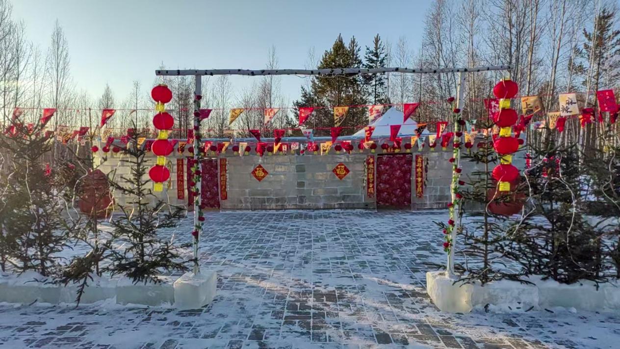 在裝飾設計上進一步深化民俗特色,屋外懸掛的串串紅辣椒、金黃苞米穗與屋內(nèi)的東北花布、俏皮雪人交織出濃郁地域風情,游客隨手一拍便是刷屏社交平臺的冬日大片。