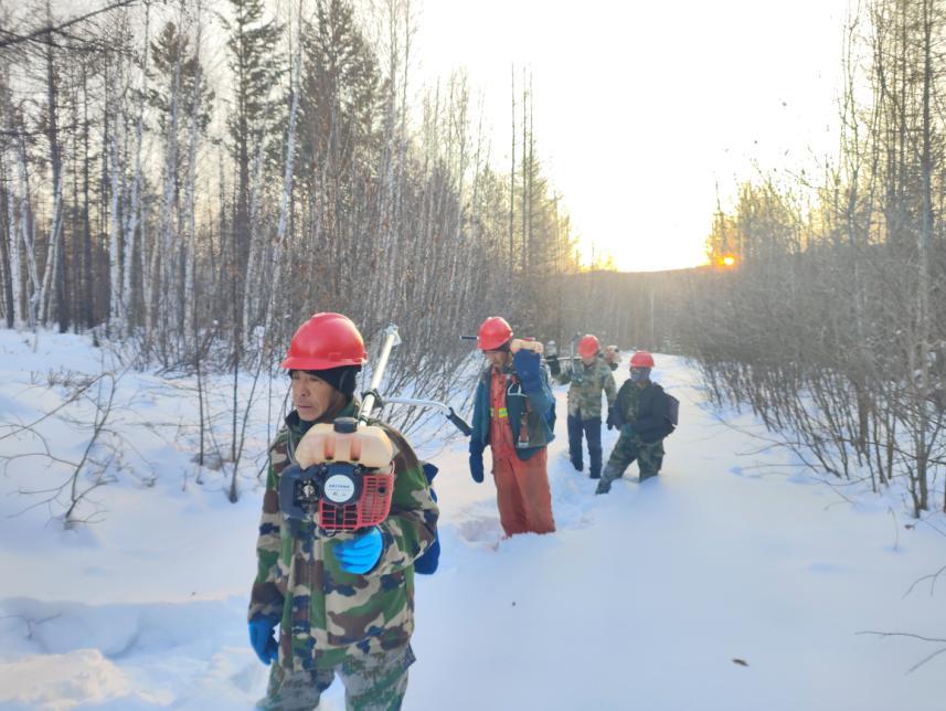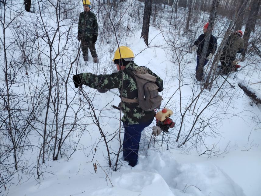 規(guī)范操作不松懈,筑牢安全“防護(hù)墻”。在各營林作業(yè)現(xiàn)場,寒風(fēng)凜冽卻擋不住職工們的工作熱情。大家嚴(yán)格遵守冬季營林作業(yè)規(guī)程,統(tǒng)一佩戴安全帽穿梭在林間,有條不紊地開展林木修枝、病腐木清理、林地?fù)嵊裙ぷ鳌S弯徥謬?yán)格執(zhí)行“先檢查、再啟動、穩(wěn)操作”的流程,精準(zhǔn)把控作業(yè)角度;撫育隊(duì)員踩著厚雪,手持工具對林間枯死木、被壓木及對目的樹種生長存在影響的進(jìn)行有序清理、歸堆。從器械檢查到流程落實(shí),每一個環(huán)節(jié)都嚴(yán)謹(jǐn)規(guī)范,安全帽上的反光條在皚皚白雪中格外醒目,成為林海間一道守護(hù)安全的風(fēng)景線。