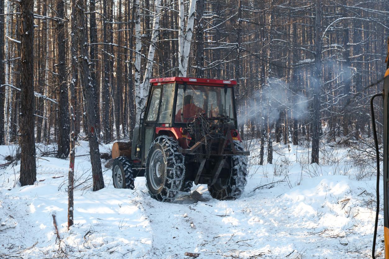 阿木爾林業(yè)局職工駕駛拖拉機(jī)向作業(yè)場地駛?cè)ィㄍ趿?攝)