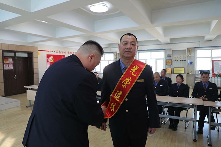 歡送會由班組車長董鵬主持,車長李超走上前,親手為馮春生同志戴上了象征光榮退休的紅色綬帶和鮮艷的大紅花。這一刻,馮春生同志眼中閃爍著激動的光芒,這綬帶與紅花,不僅是對他數(shù)十年如一日堅守崗位的肯定,更是對一段無悔職業(yè)生涯的最高致敬。