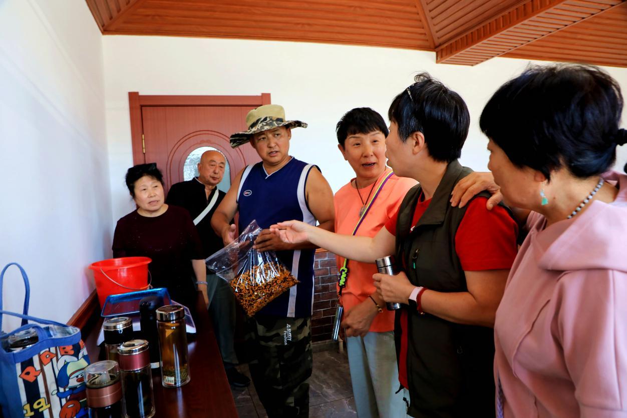 龍河林場職工向游客銷售林下產品(王力 攝)