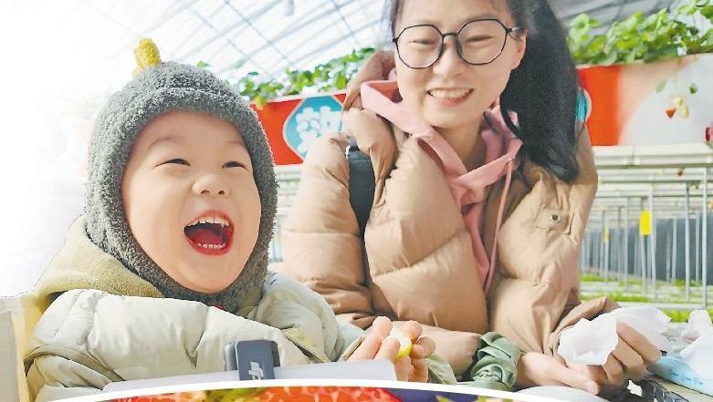 冰天雪地中,推開溫室大棚的門,好像換了一個(gè)季節(jié),孩子們采摘的歡樂彌漫開來(lái)。
