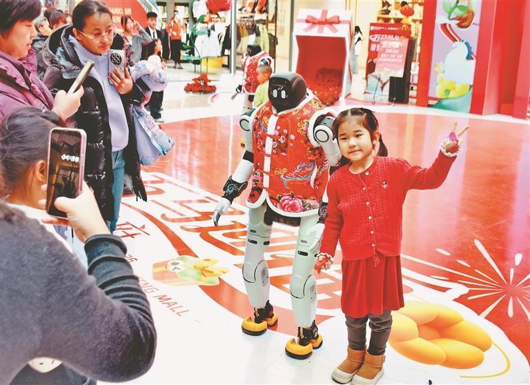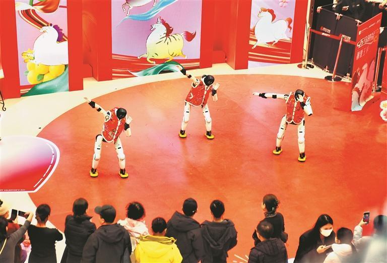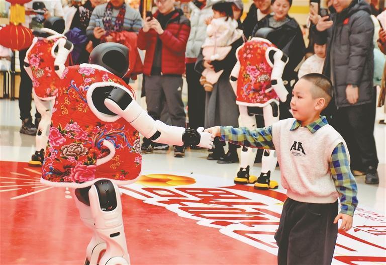 19日,正月初三。哈爾濱市道里區(qū)一家大型商場舉行了機(jī)器人舞蹈表演,吸引許多市民游客駐足觀看。走進(jìn)場地的三個機(jī)器人身高1.5米左右,穿著紅色棉坎肩,十分喜慶。在音樂伴奏下,它們翩翩起舞,動作整齊劃一。表演結(jié)束后,機(jī)器人走進(jìn)人群,與大家握手、合影、互動。春節(jié)假期,哈爾濱市多家商場都推出了機(jī)器人表演,讓市民游客與最新科技來個親密接觸。