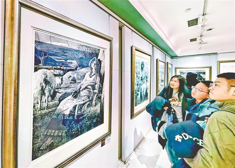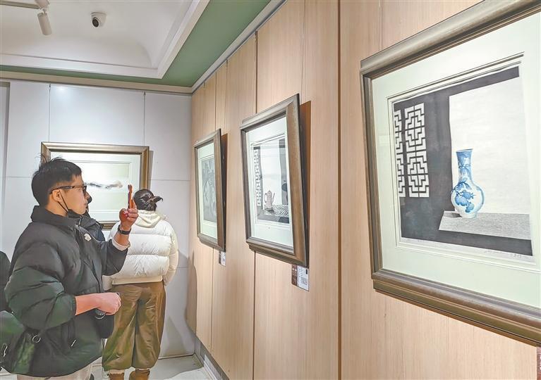 近日,位于哈爾濱市道外區(qū)的哈藥六版畫(huà)博物館內(nèi),游客們?cè)谡箯d里觀賞油畫(huà)、版畫(huà),在走廊和大廳里打卡拍照發(fā)朋友圈。