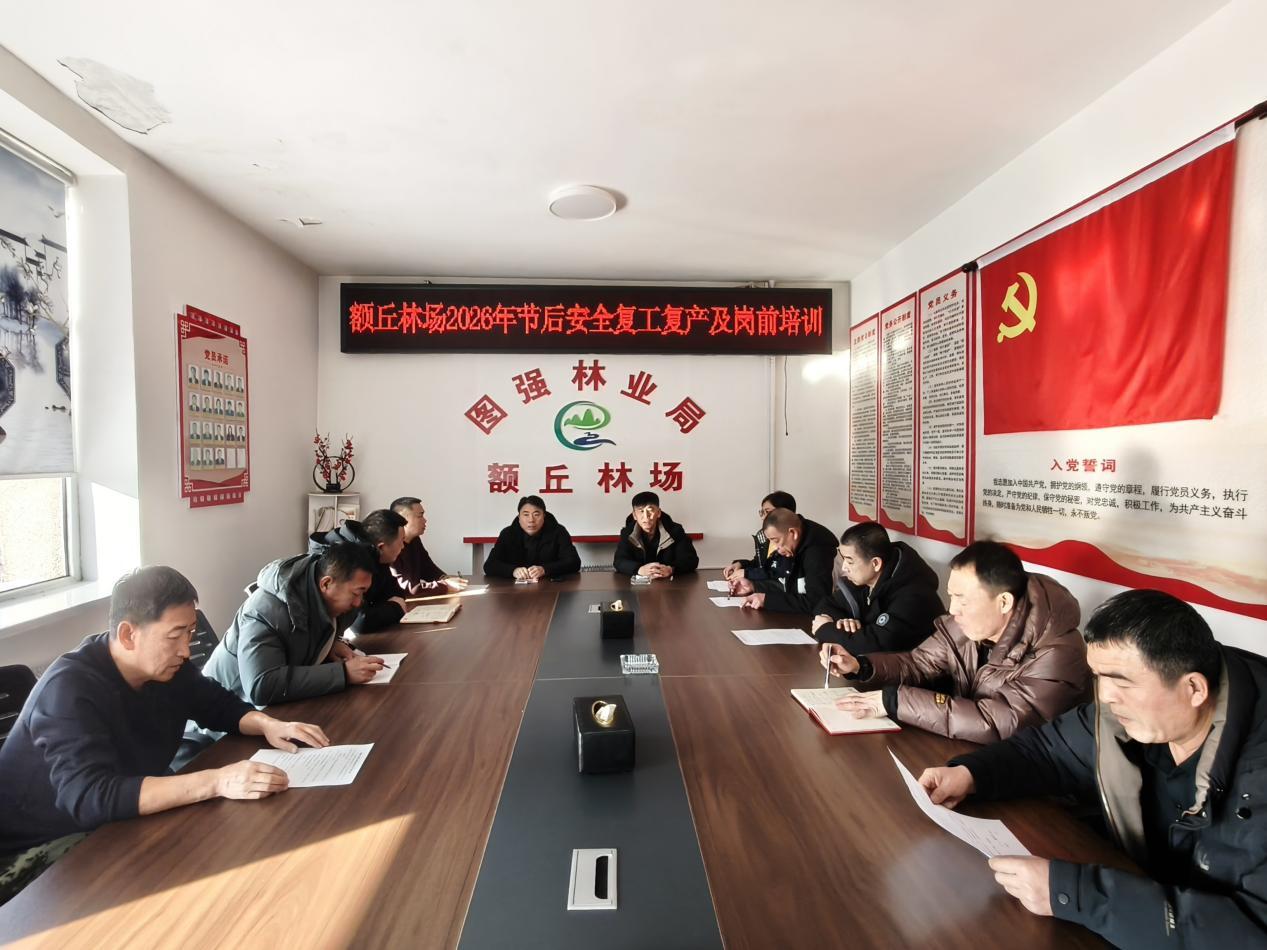 黑龍江經(jīng)濟(jì)網(wǎng)訊(劉鑫)新年春作首,萬(wàn)事行為先。春節(jié)假期過(guò)后,圖強(qiáng)林業(yè)局額丘林場(chǎng)迅速組織全體干部職工收心歸位、調(diào)整狀態(tài),全面從節(jié)日氛圍轉(zhuǎn)入工作常態(tài),把思想和精力集中到林場(chǎng)各項(xiàng)重點(diǎn)工作上來(lái),以昂揚(yáng)姿態(tài)、務(wù)實(shí)作風(fēng)開(kāi)啟新一年林場(chǎng)事業(yè)高質(zhì)量發(fā)展新征程。
