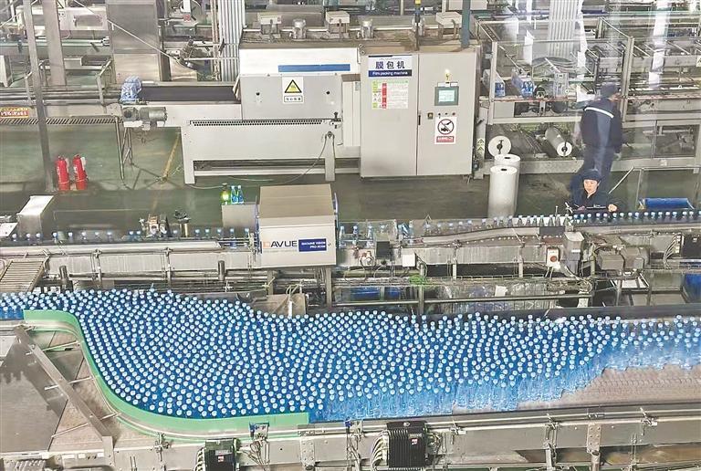 “吹瓶、灌裝、旋蓋一體機(jī)是我們生產(chǎn)線上最有含金量的設(shè)備,瓶坯經(jīng)過高溫加熱、壓縮空氣吹制,再完成灌裝、旋蓋,全程無菌操作,確保每一滴水都純潔無瑕?!鄙a(chǎn)車間主任劉恒介紹,該設(shè)備生產(chǎn)能力可達(dá)每秒10瓶,搭配全新的視覺檢測儀、稱重機(jī)和每分鐘可打包30箱產(chǎn)品的箱包機(jī),讓生產(chǎn)效率與產(chǎn)品標(biāo)準(zhǔn)雙提升。