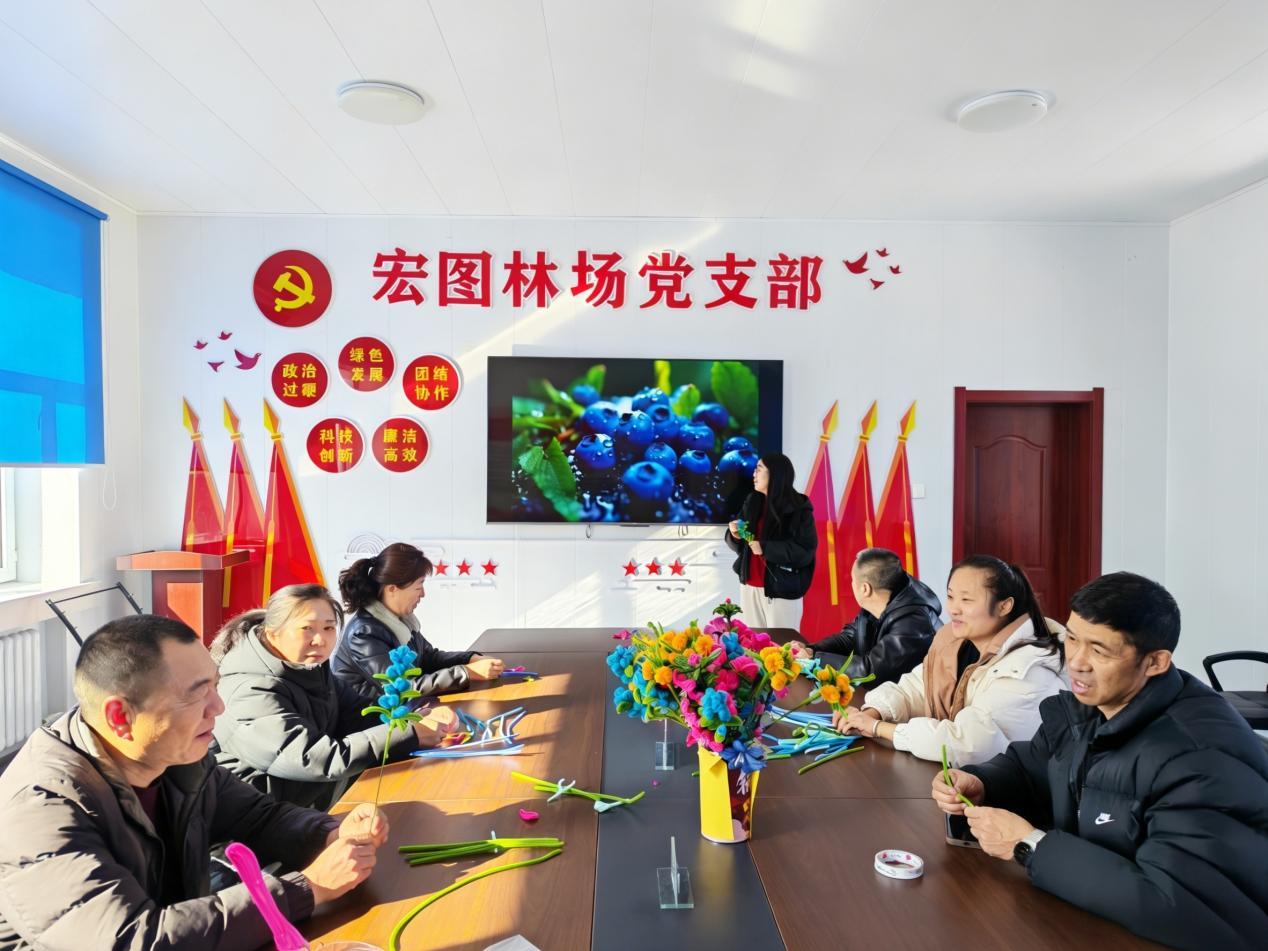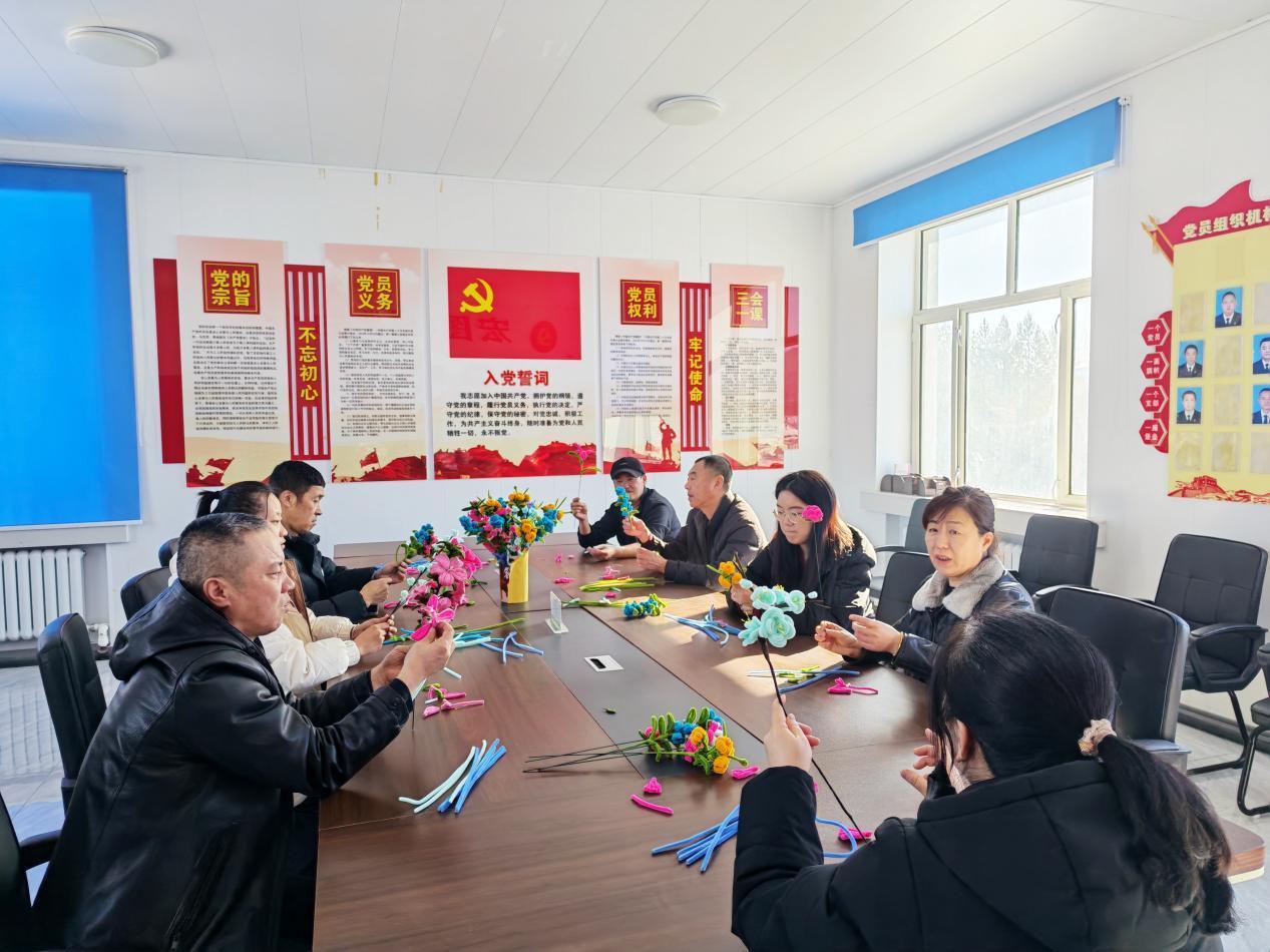 活動(dòng)現(xiàn)場(chǎng),大家認(rèn)真聆聽專業(yè)人員講解野生興安杜鵑、野生藍(lán)莓等本土植物保護(hù)的相關(guān)知識(shí)。隨后,通過觀看教學(xué)視頻系統(tǒng)地學(xué)習(xí)扭扭棒基礎(chǔ)造型技巧,在動(dòng)手實(shí)踐中加深對(duì)野生植物的保護(hù)與認(rèn)知。實(shí)操環(huán)節(jié),職工們圍坐一堂、相互切磋,指尖翻飛間,一根根彩色扭扭棒被巧妙彎折、組合,化作栩栩如生的野生興安杜鵑、飽滿圓潤(rùn)的藍(lán)莓果束等精美手工作品。作品展示環(huán)節(jié),大家踴躍分享創(chuàng)作靈感、交流制作心得,集體合影定格溫馨瞬間,現(xiàn)場(chǎng)氛圍輕松融洽、其樂融融,充分展現(xiàn)出林場(chǎng)職工昂揚(yáng)向上、心靈手巧的良好精神風(fēng)貌。