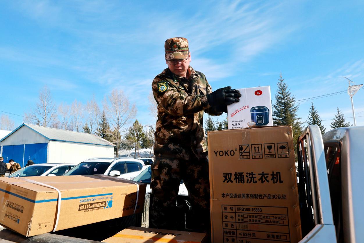 阿木爾林業(yè)局林場職工正在將領取的物品裝車(王力 攝)
