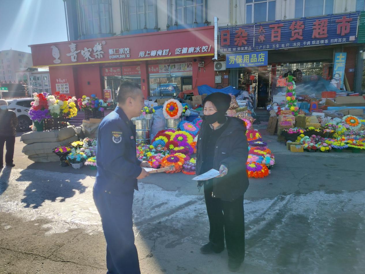 隨后,宣傳小隊(duì)深入廣場周邊及街巷內(nèi)多家專門售賣香燭、紙錢等傳統(tǒng)祭祀用品的店鋪。宣傳人員以“安全提示員”和“知識(shí)傳播者”的身份,向店主和顧客進(jìn)行精準(zhǔn)科普。他們詳細(xì)講解了易燃祭祀用品在儲(chǔ)存、銷售環(huán)節(jié)的注意事項(xiàng),以及一旦發(fā)生火情的初期處置方法,并懇請商戶在銷售時(shí)主動(dòng)對顧客進(jìn)行一句安全提醒,共同當(dāng)好防火“前哨”。