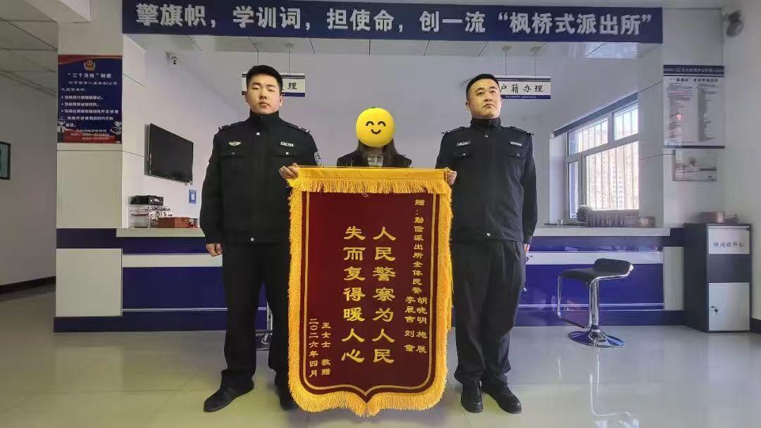 民警隨后將手機當面交還給失主,失主看到失而復(fù)得的手機,且內(nèi)部文件完好無損,激動地向民警連連道謝。為感謝民警高效處置、為民解憂,失主特意制作錦旗,專程送到勤儉派出所,表達對民警的感激之情。