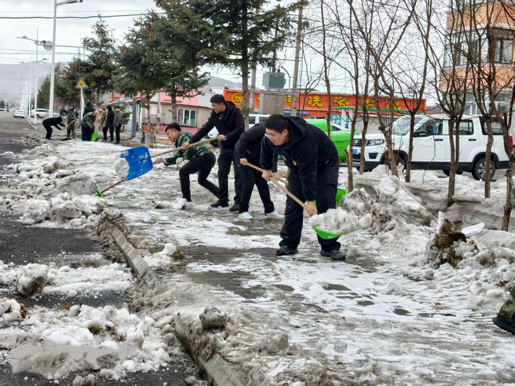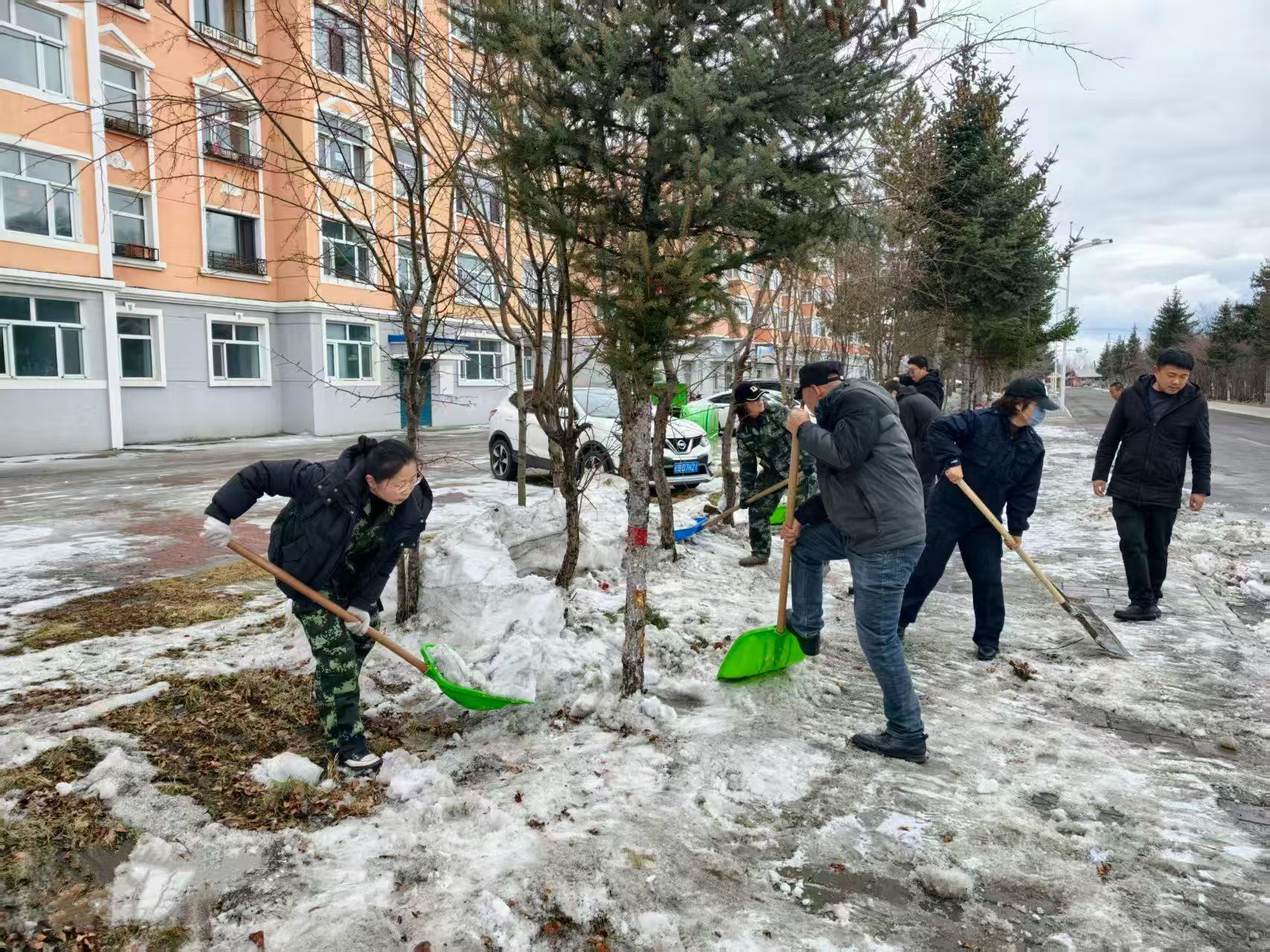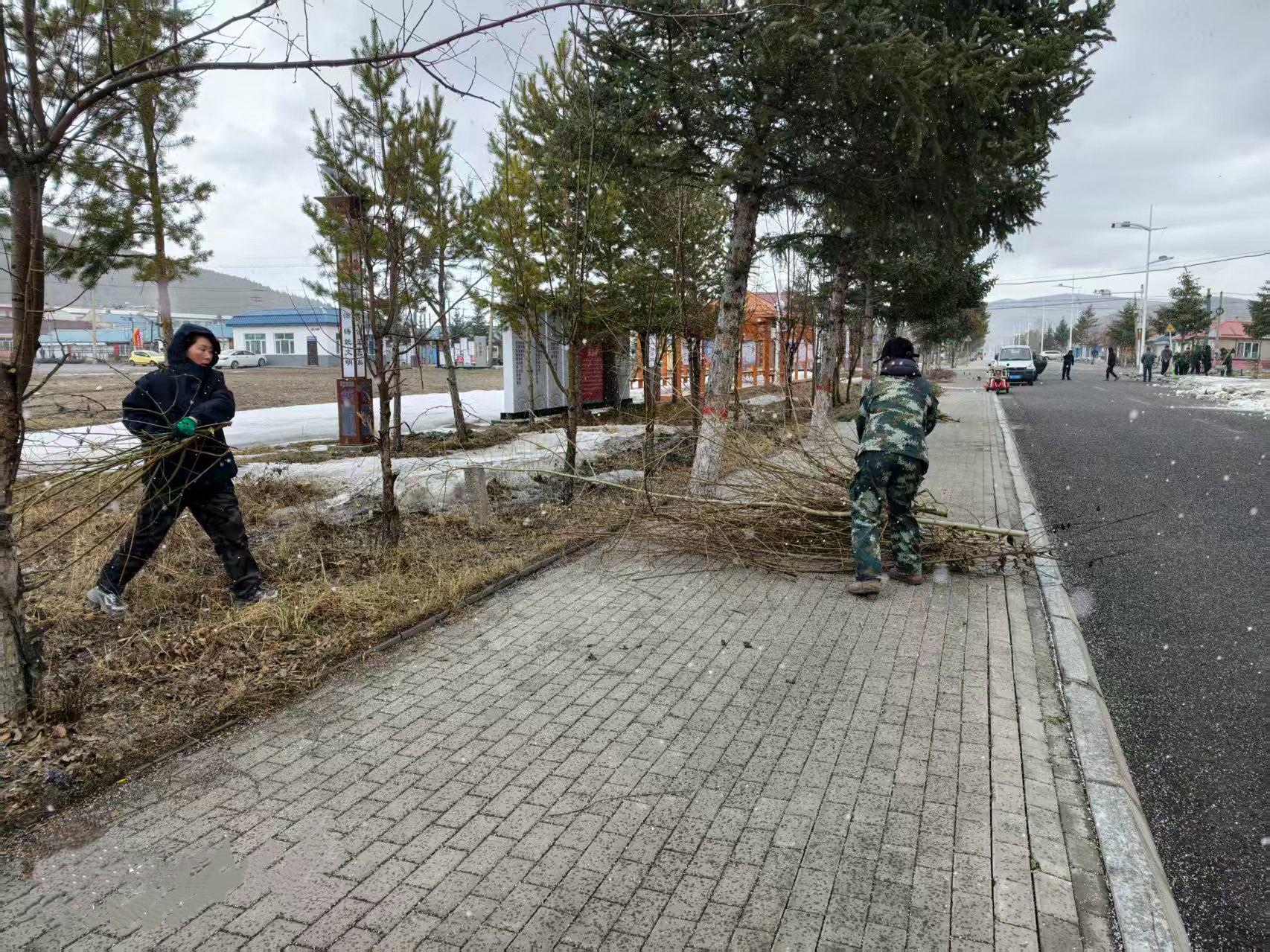 行動中,林場全體干部職工20余人對分擔區(qū)內(nèi)裸露的白色垃圾、雜物雜草等進行了全面的清理。寒風里,義務勞動的現(xiàn)場一片熱火朝天。同志們手持工具,分工協(xié)作、干勁十足。有的揮動鐵鎬,刨開凍硬的積雪,一鎬一鑿鏗鏘有力;有的手持鏟鍬,將碎雪與雜物歸攏成堆,動作麻利有序。在道路兩側(cè)的綠化帶內(nèi),割灌機轟鳴作響,清理雜亂枝杈,讓林木整齊舒展;手持耙子的同志俯身勞作,細細摟凈地面雜草枯葉,清出一片整潔林地。裝車現(xiàn)場更是繁忙,眾人合力將枯枝、雜物、積雪塊搬運裝車,此次環(huán)境衛(wèi)生大清理,共清運各類垃圾、積雪10余車。